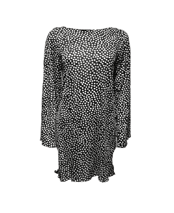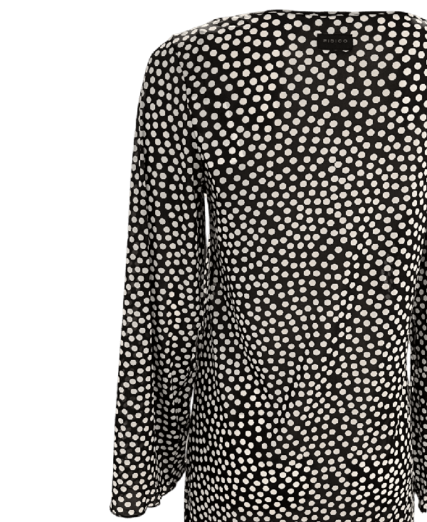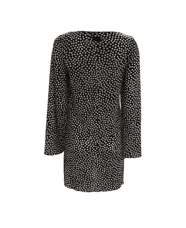 Abito corto a manica lunga firmato Fisico Abito corto a manica lunga firmato Fisico Codice del prodotto: FV30LP; Colore del prodotto: nero a pois bianchi; Maniche lunghe; Stagione primavera/estate.