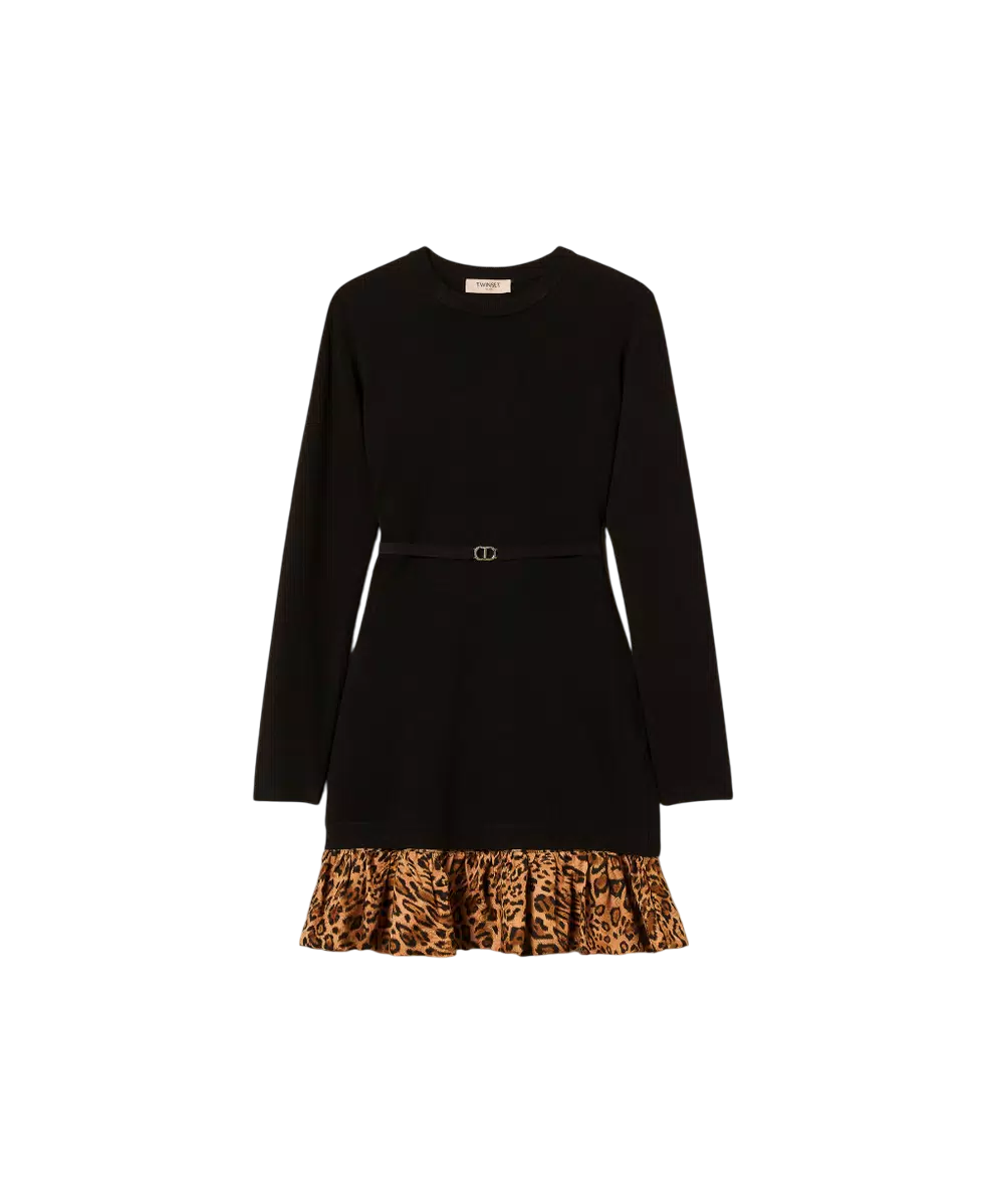 Abito corto in maglia con inserto animalier