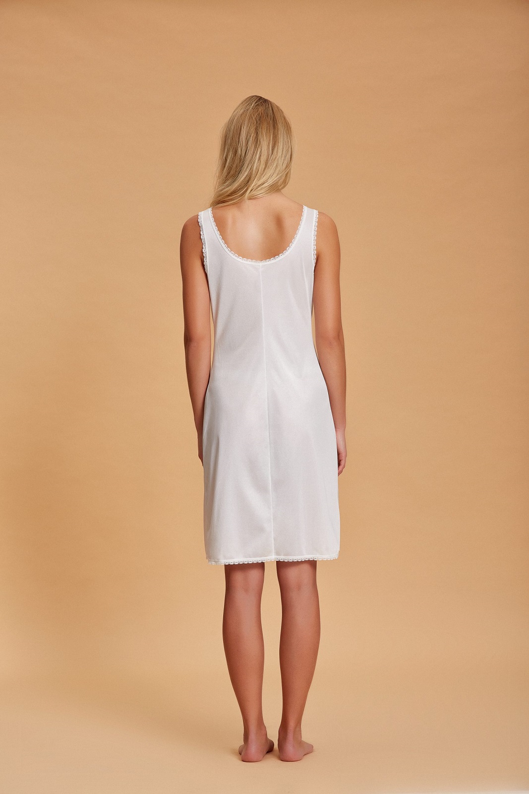Elegante sottoveste Andra con raffinati ricami in pizzo sul dรฉcolletรฉ e comode spalline larghe. Un capo essenziale per sentirsi femminili ogni giorno.