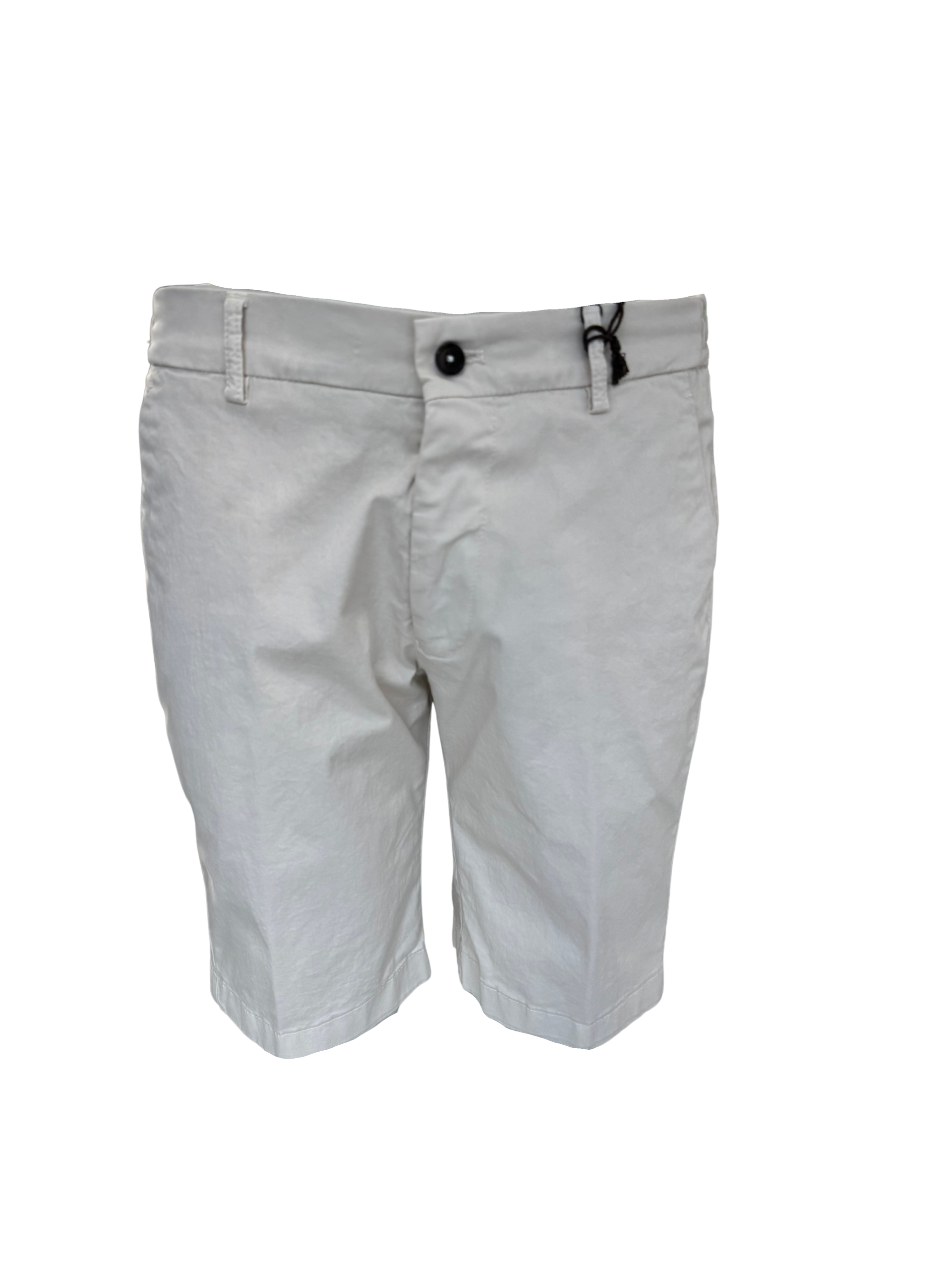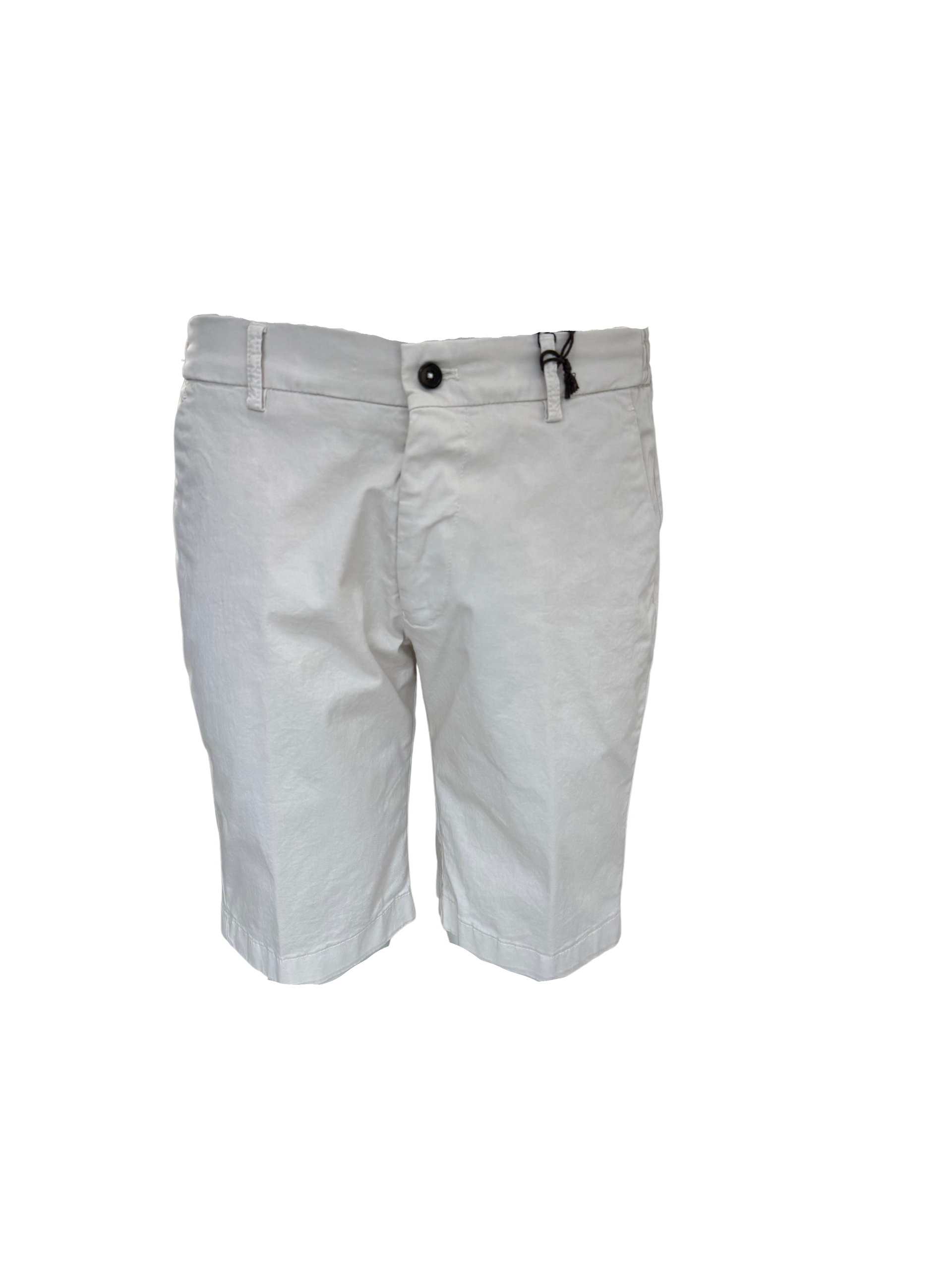 Bermuda color latte firmato Berwich Bermuda color latte firmato Berwich Pantaloni slim fit, color latte. Chiusura a vita con zip e cinturino a tre bottoni. Composizione pantaloni: 98% cotone elasticizzato, 2% elastan. Made in Italy. Collezione primavera / estate 2025.