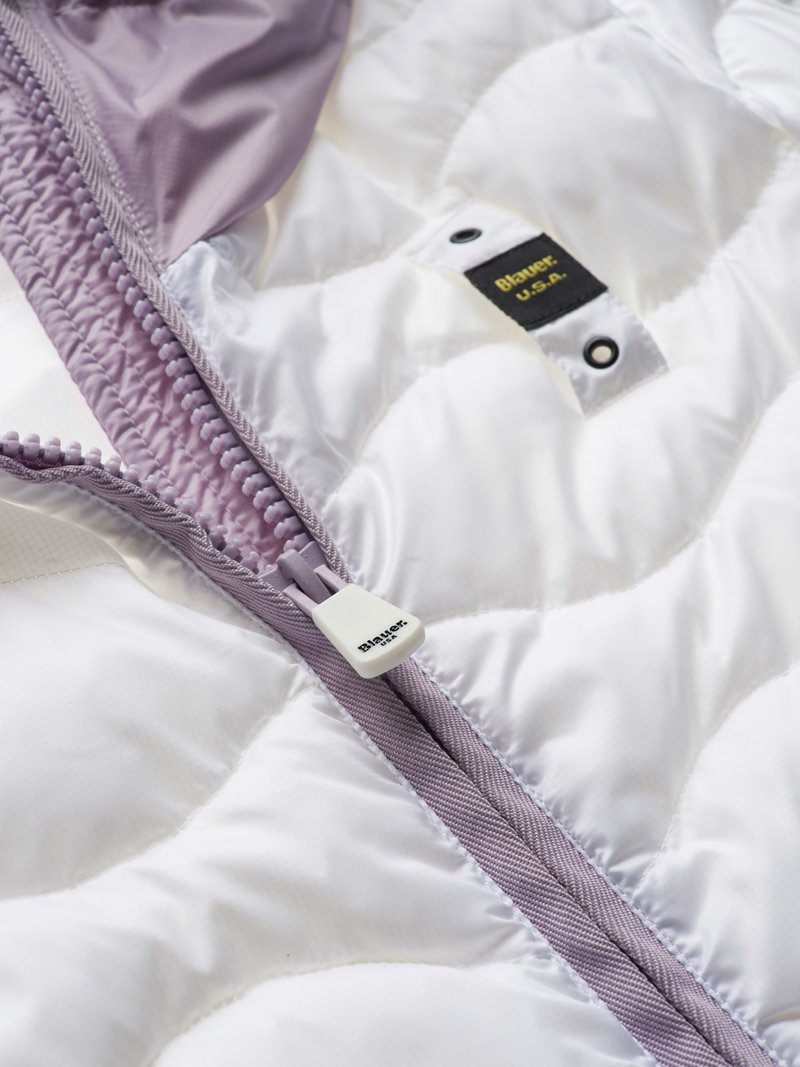 - Piumino bicolore in nylon micro rip con impuntura a onde.