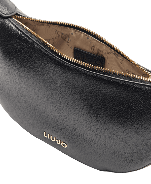 Borsa a spalla nera firmato Liu Jo Borsa a spalla nera firmato Liu Jo Borsa a spalla nera; Forma a mezza luna; Profili zip sul fondo; Fodera interna con logo monogram; Logo lettering in metallo; Scomparto centrale chiuso con zip; Misure: 25 x 7 x 16 cm; Tracolla removibile; Prodotto “Liu Jo Better”.