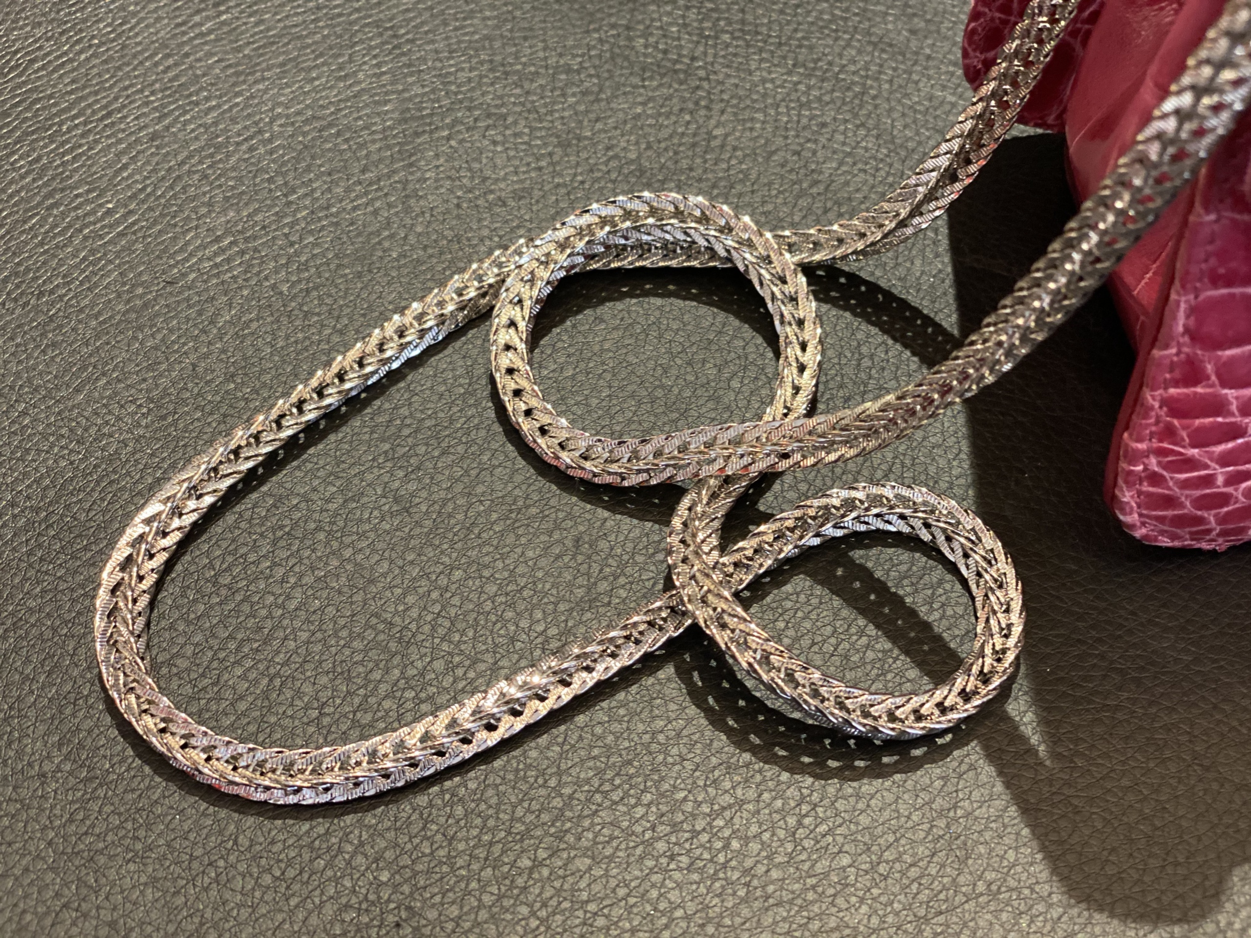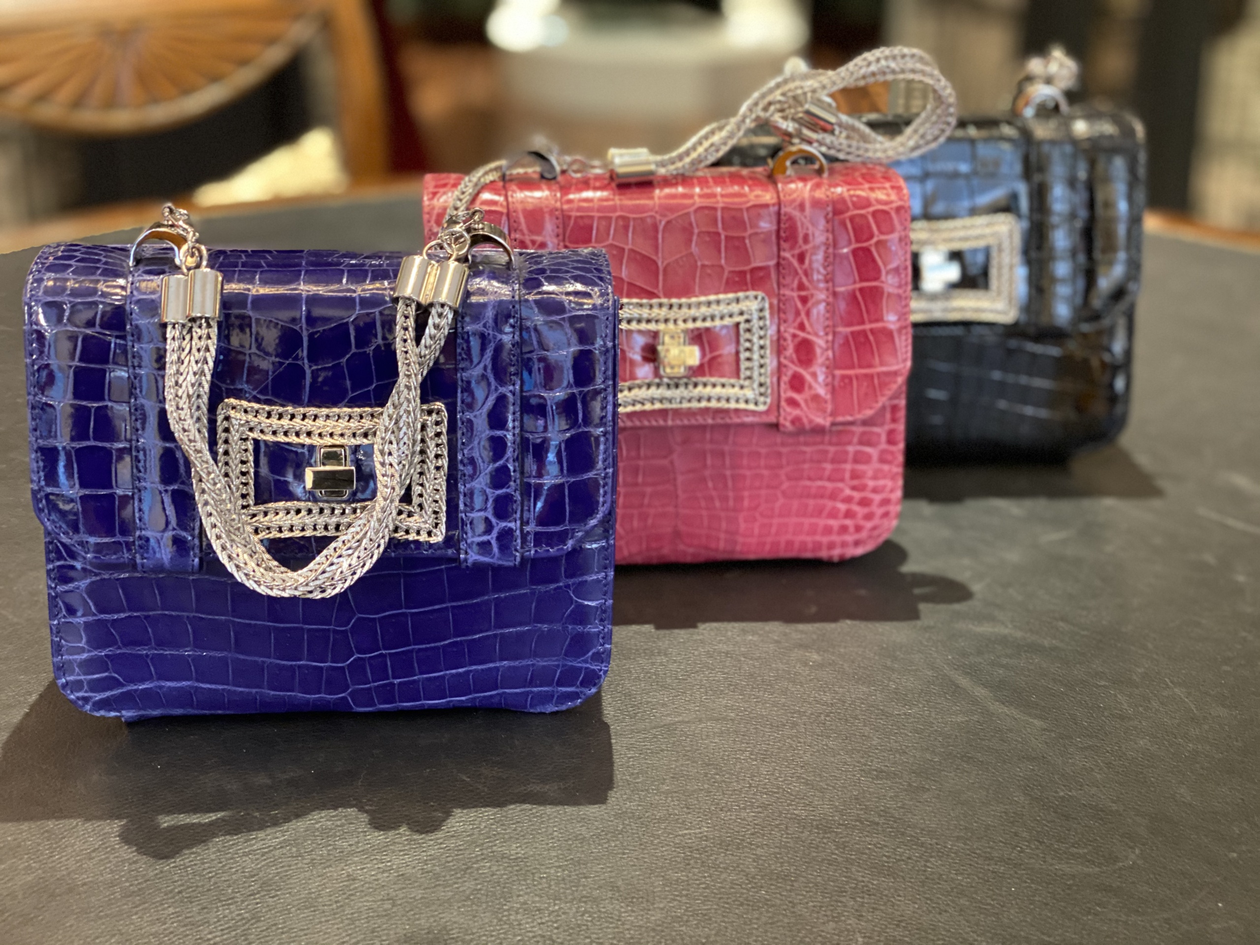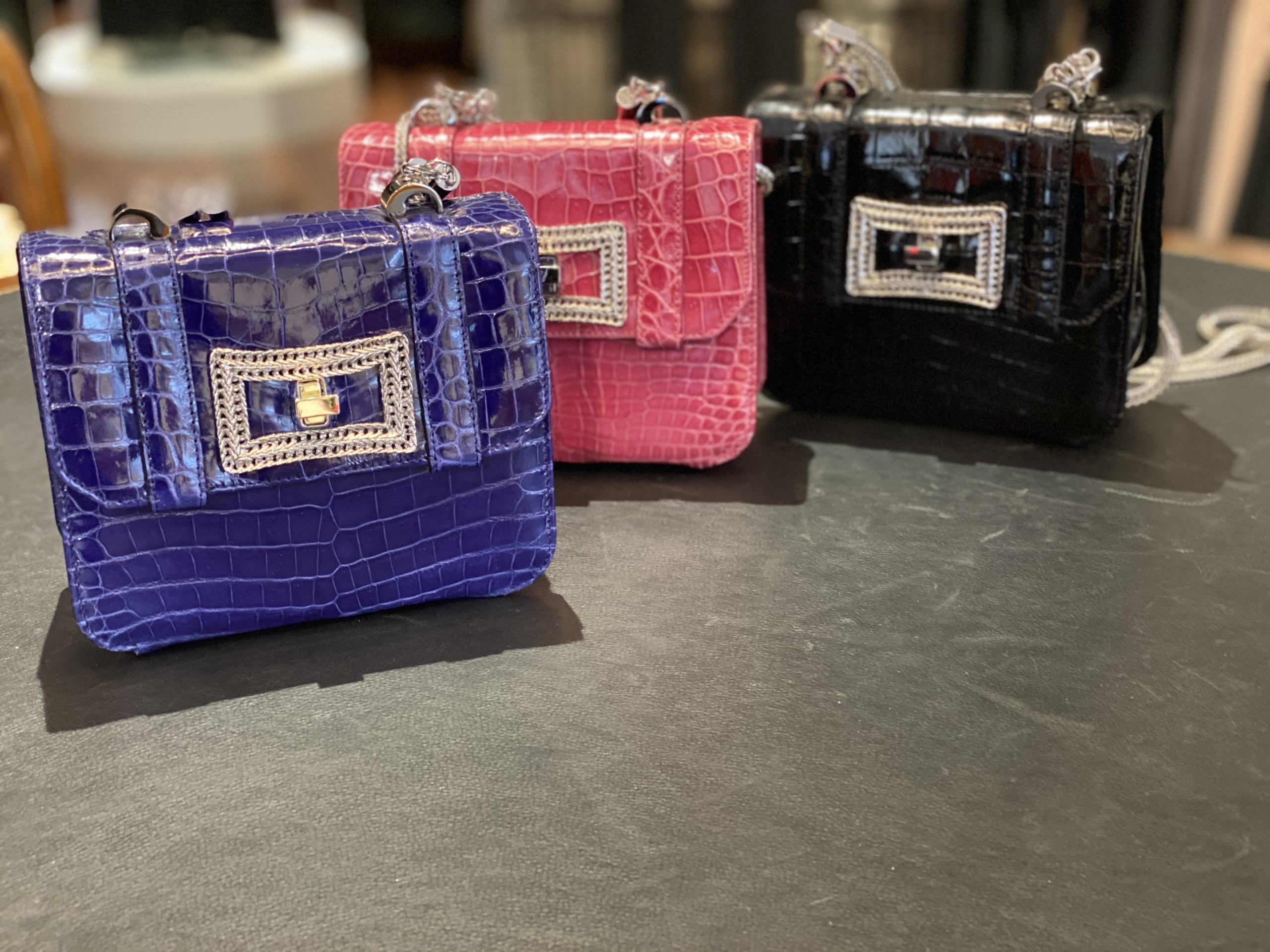 BORSA IN VERA PELLE CON CHIUSURA GIOIELLO IN METALLO, MANICO SEMPRE IN METALLO STACCABILE COME ANCHE LA TRACOLLA.