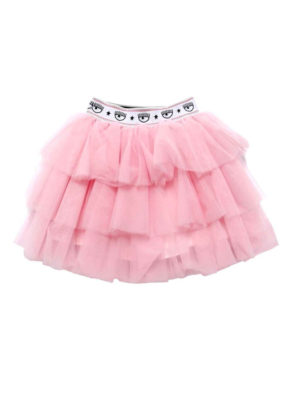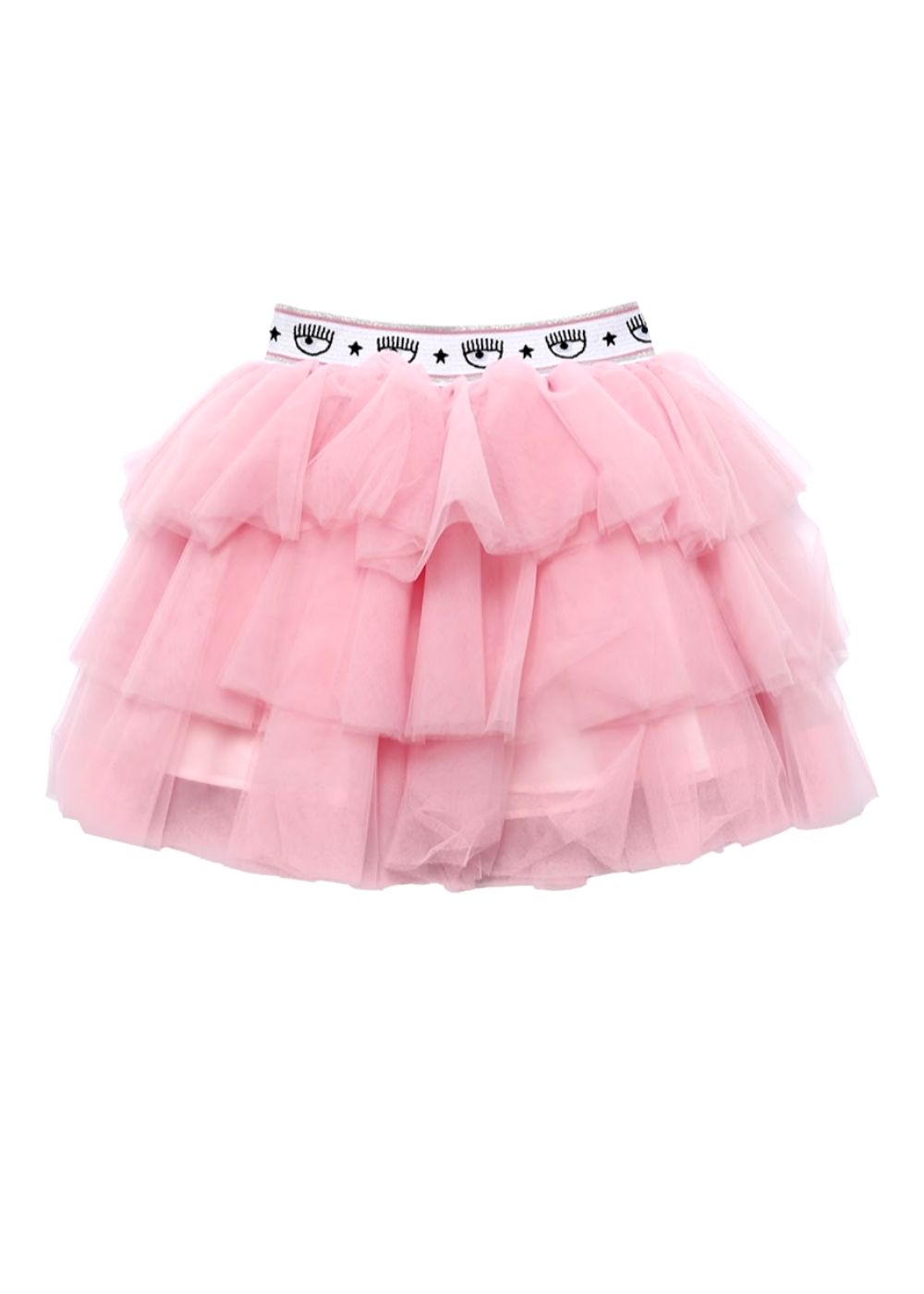 La gonna effetto tutรน รจ multistrato con baschina logata. DETTAGLI Chiara Ferragni bebรจ tulle manoseta fodera mussola e volant multistrato cintura elastica logomania Made in: Italy Tessuto principale: 100% Poliammide;Fodera principale: 100% Cotone