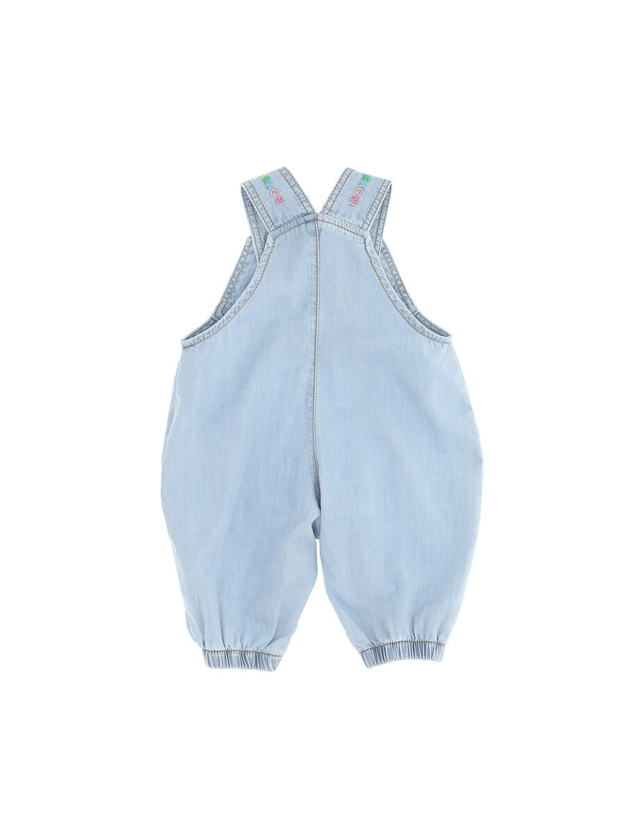 Salopette in tencel con bratelle e stampa Chiara Ferragni mascotte. chambray in Tencel CFMascotte bretelle fantasia allacciatura al cavallo 100% Cotone