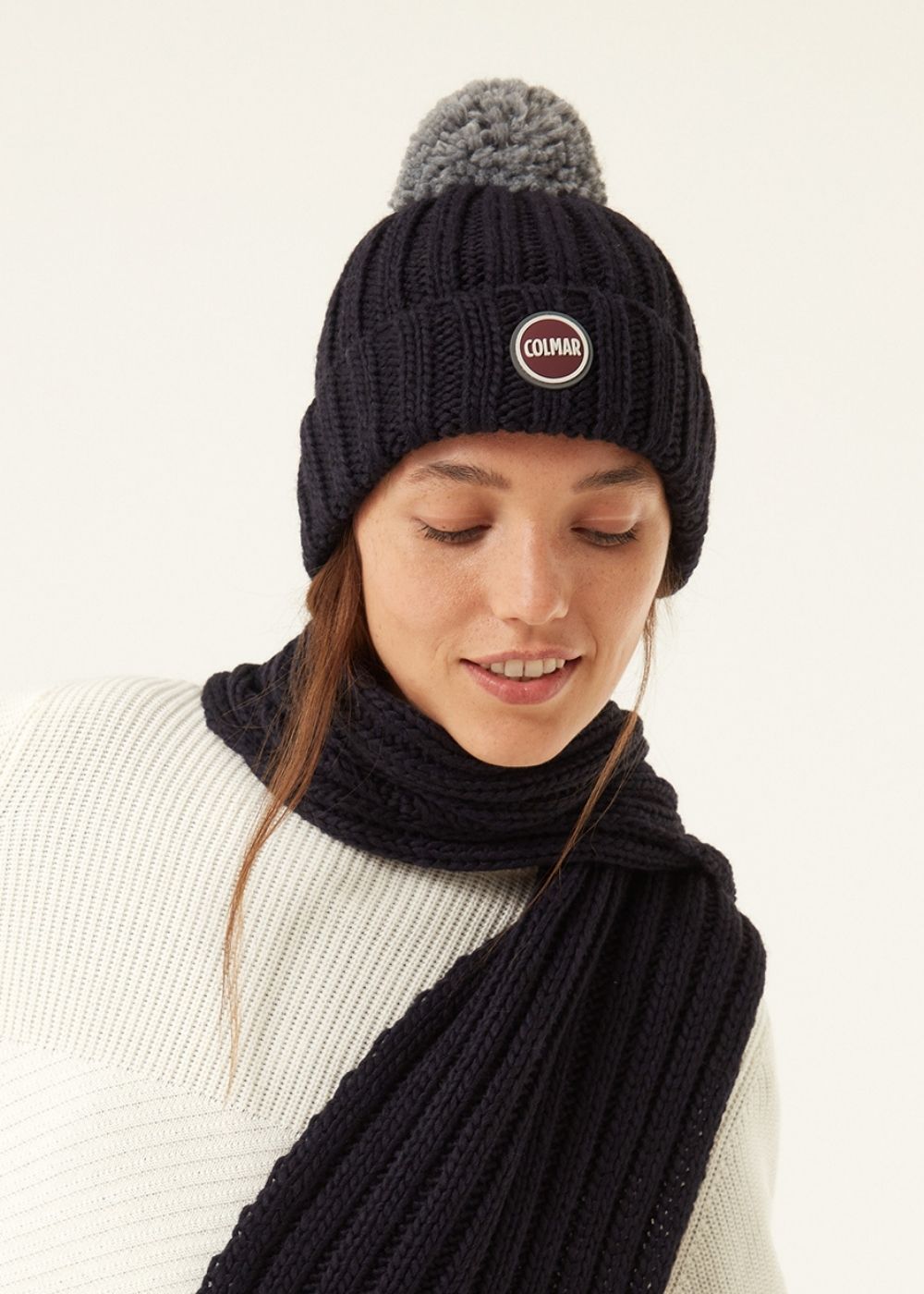 Cappello unisex in misto lana e acrilico con pompon. Abbinato alla sciarpa 5244 3RZ, sarร il compagno perfetto per le giornate invernali piรน fredde. Logo Colmar Originals sul davanti.