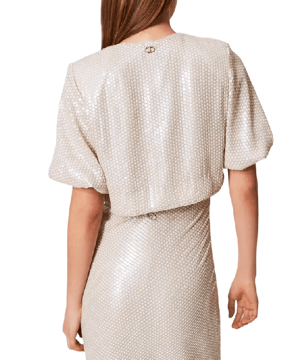 Coprispalle con ricamo di paillettes firmato Twinset Coprispalle con ricamo di paillettes firmato Twinset Codice prodotto:ย 251TT2132;ย Ricamo Sequins Beige “Rope”; Questo coprispalle ha una linea dritta; Made in Italy; 100% poliestere. Fodera: 100% poliestere. Ricamo: 100% poliestere.
