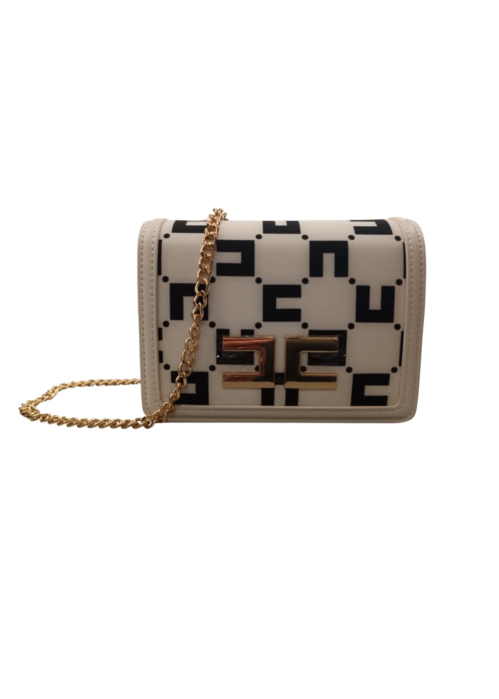 Nero/panna Placca con logo color oro Stampa logo all over Tracolla a catena comparto unico e battente nella parte superiore con chiusura magnetica