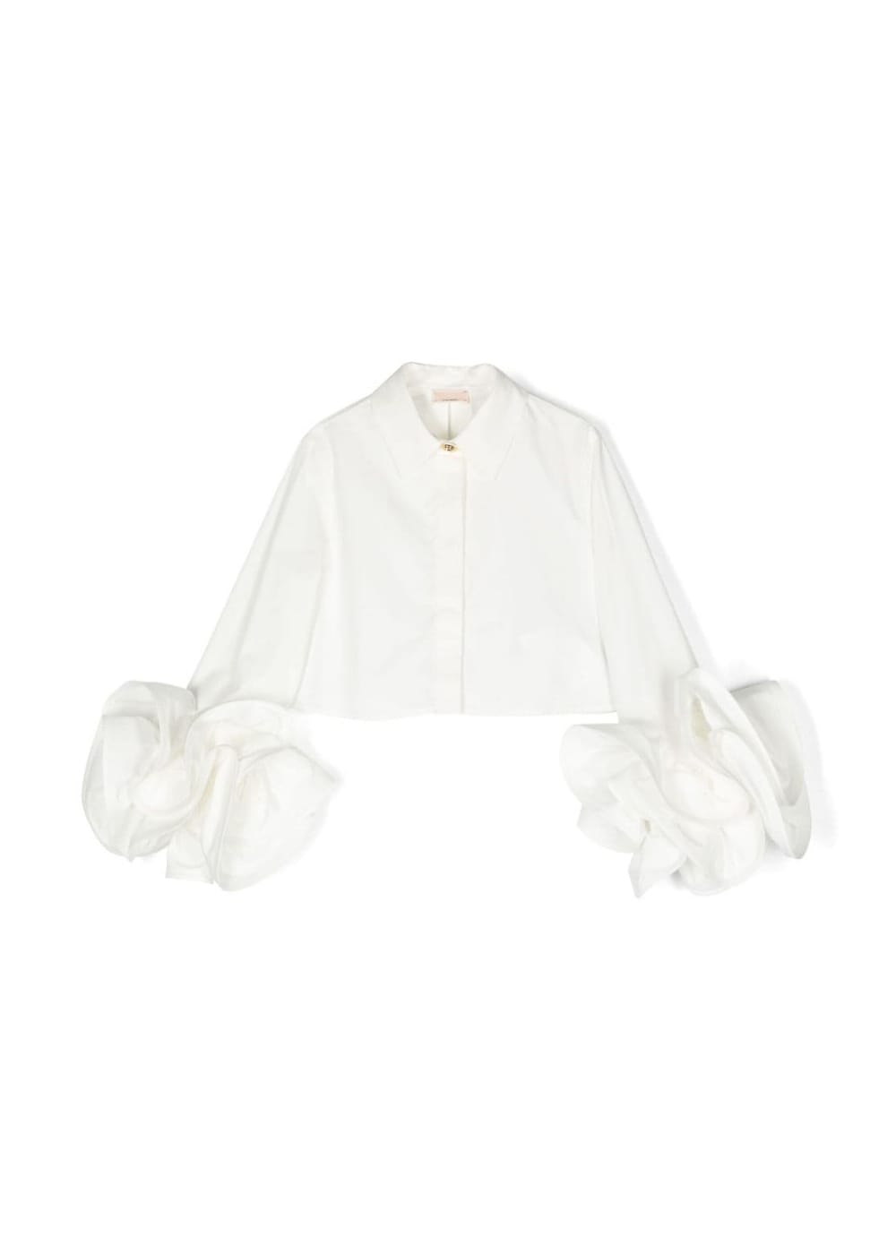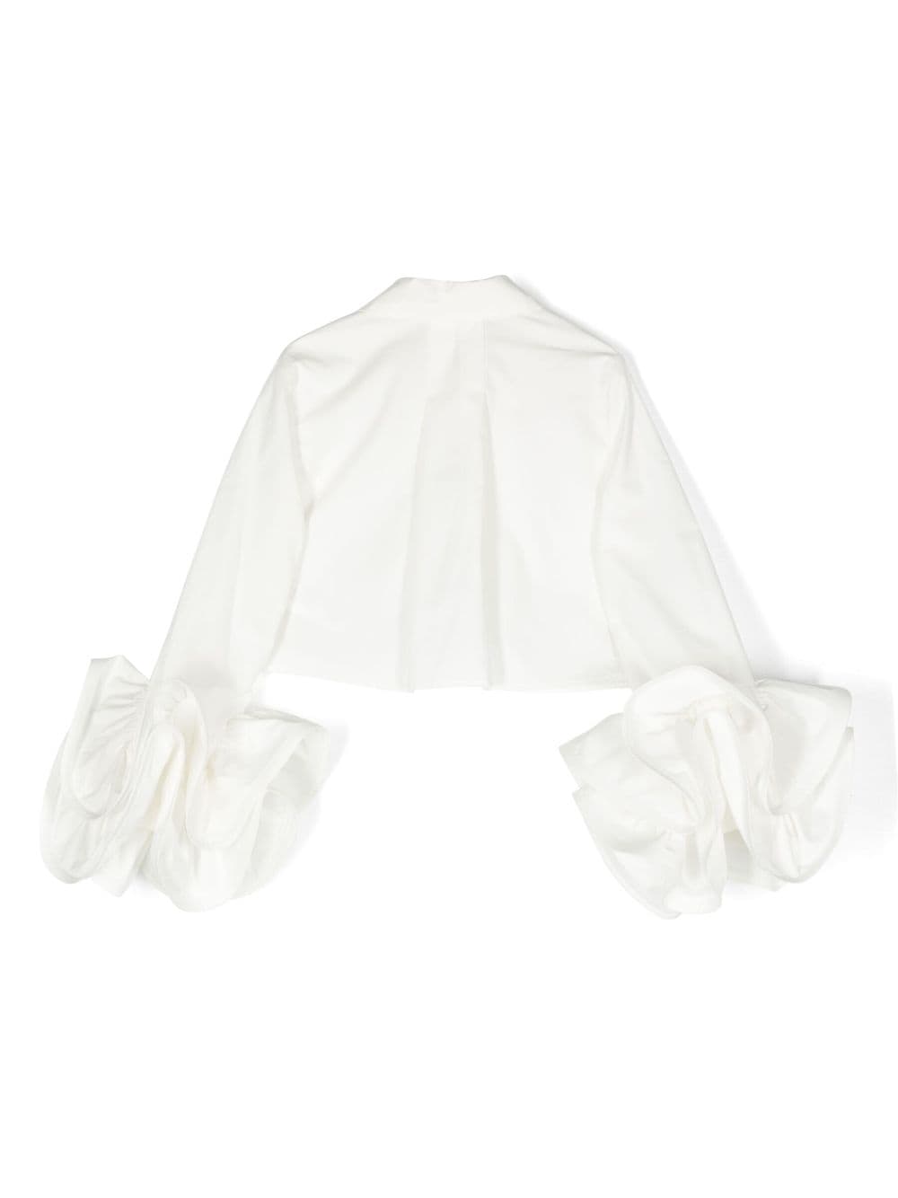 Camicia con ruches Bianco ottico Cotone Trama popeline Colletto a punta Chiusura a bottoni frontale nascosta Maniche lunghe Orli con ruches e orlo dritto Cotone 100% Lavare in lavatrice