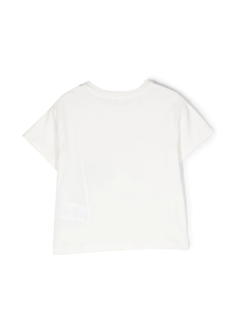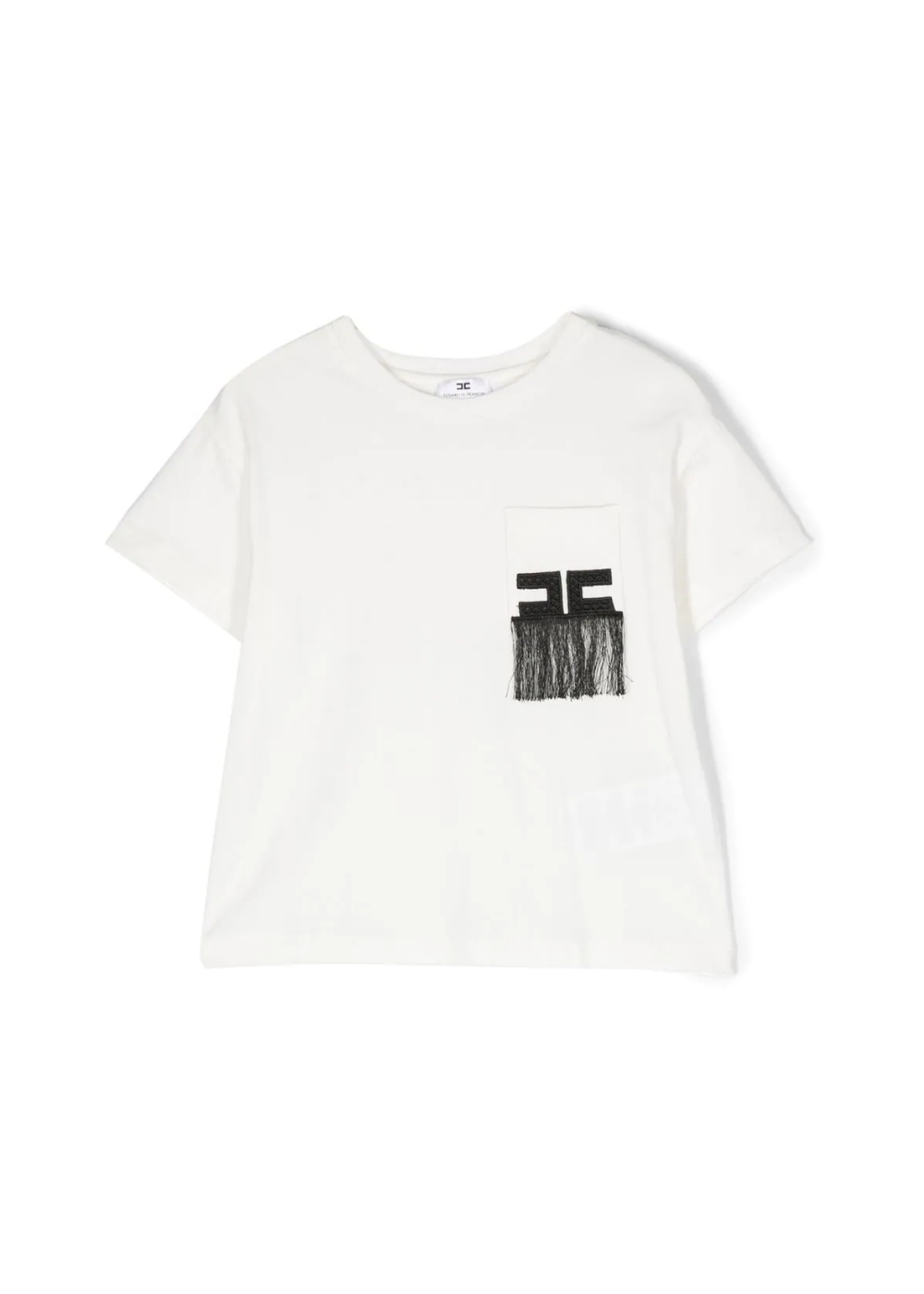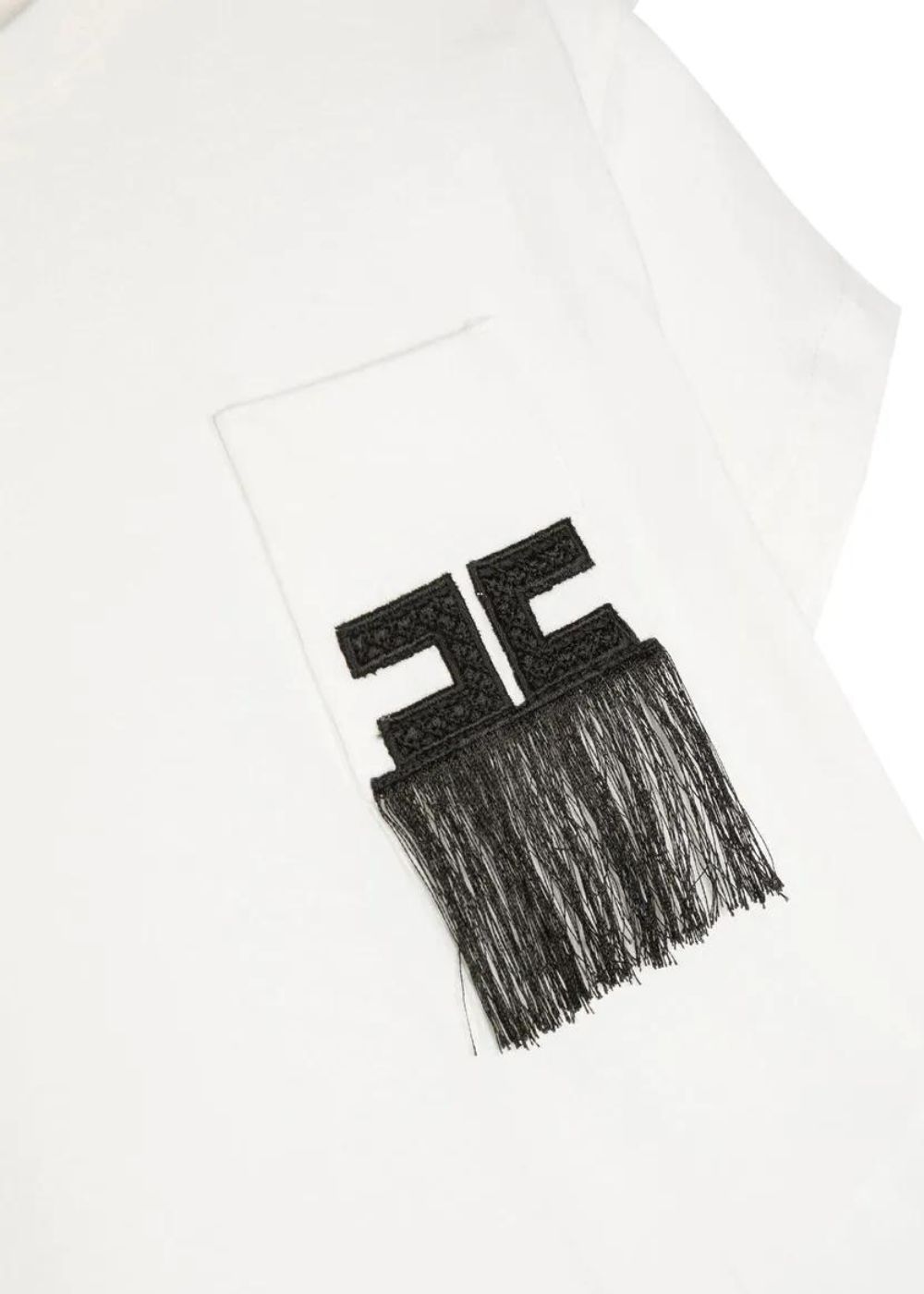 Bianco Logo ricamato sul petto Dettaglio con frange Scollo rotondo Maniche corte e orlo dritto Cotone 94%,ย Spandex/Elastam 6%