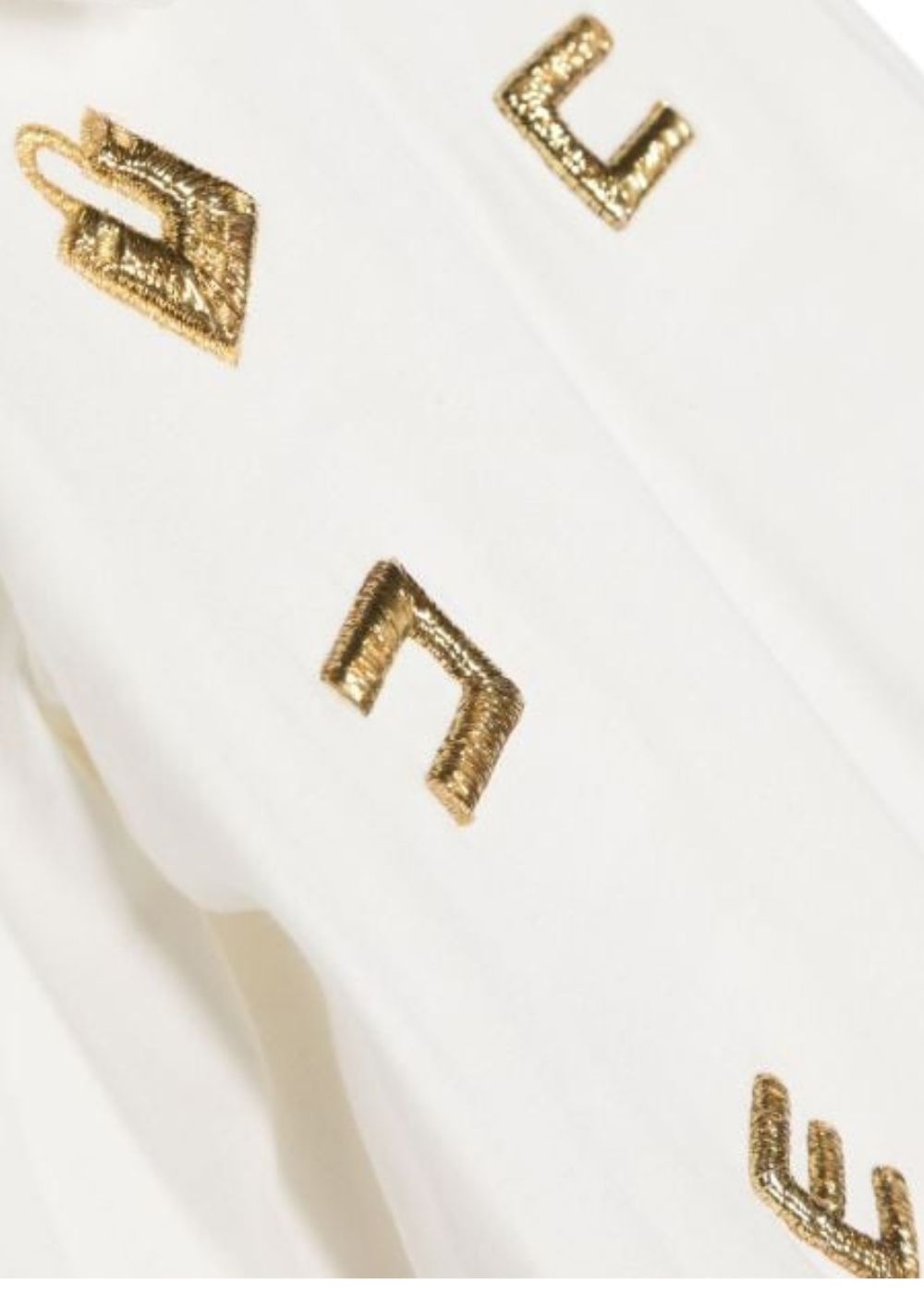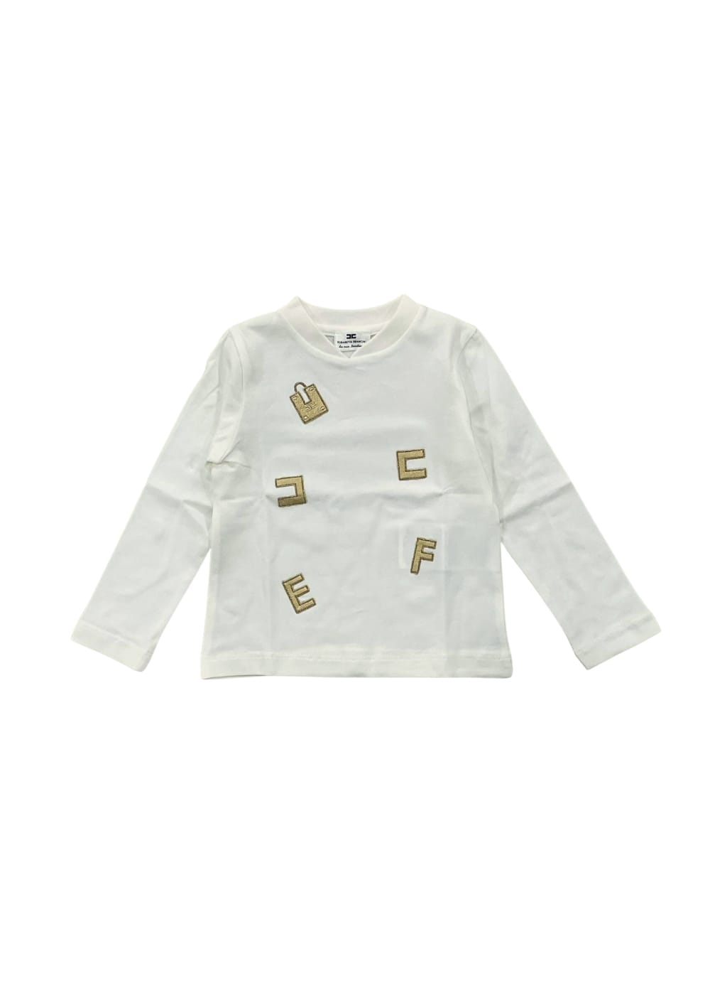 T-shirt con ricamo Color oro Ricamo con logo frontale Maniche lunghe