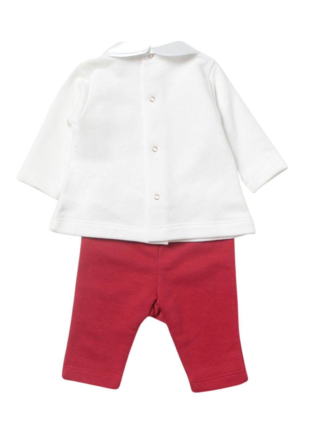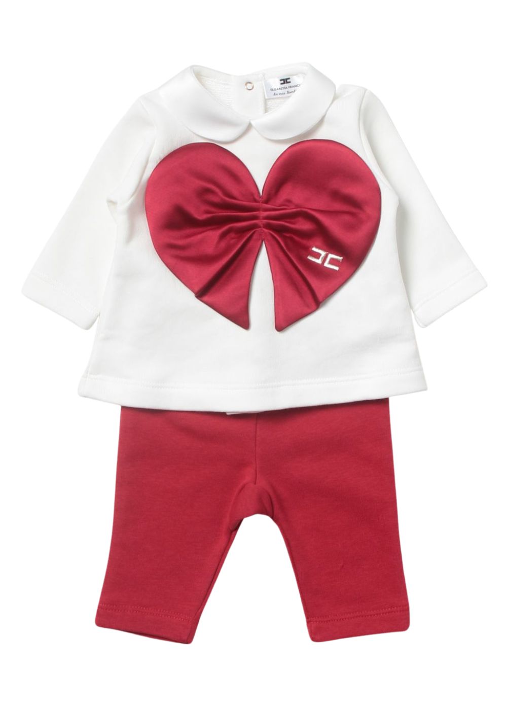 โข Design casual-chic โข Completino due pezzi โข Cotone โข Cuore con logo ricamato โข Scollatura a girocollo โข Collo Peter Pan โข Chiusura posteriore con bottoni โข Maniche lunghe