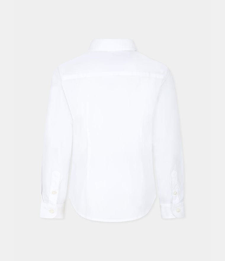 Camicia bianca, con colletto classico Maniche lunghe e chiusura con bottoni, sulla parte anteriore e sui polsini Decorata con iconico aquilotto bianco ricamato, sulla parte anteriore. Composizione: 76%cotone – 21%poliammide – 3%elastan Cura del capo: lavaggio colori chiari