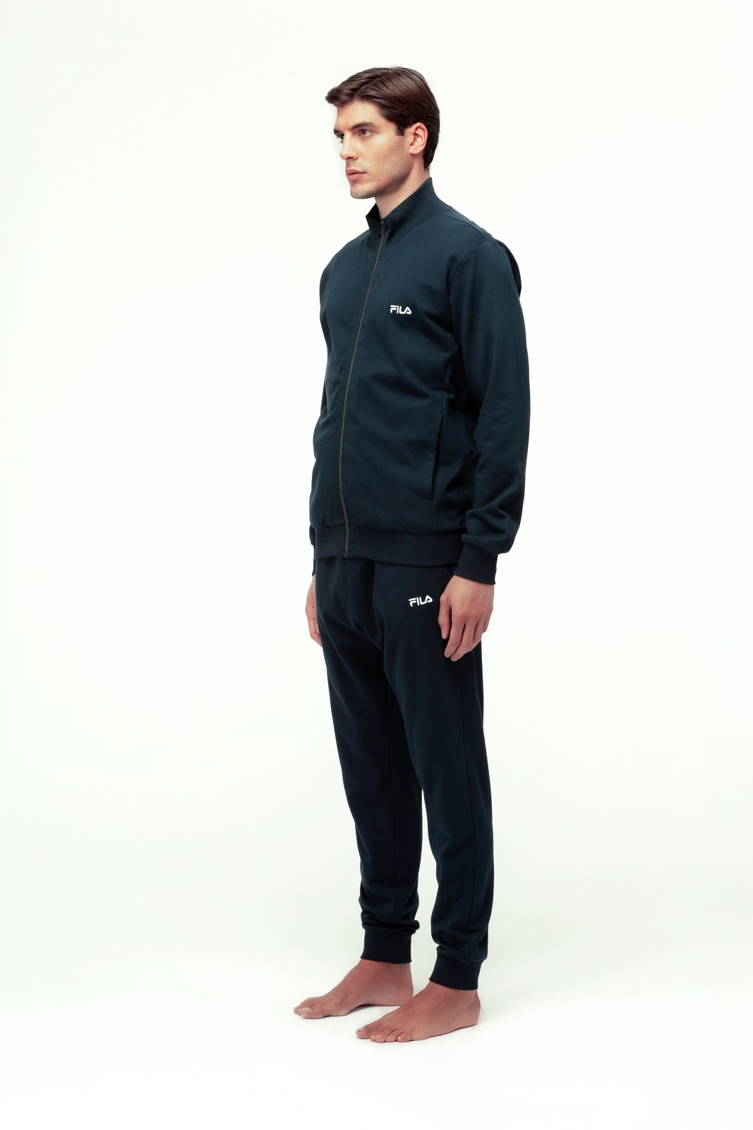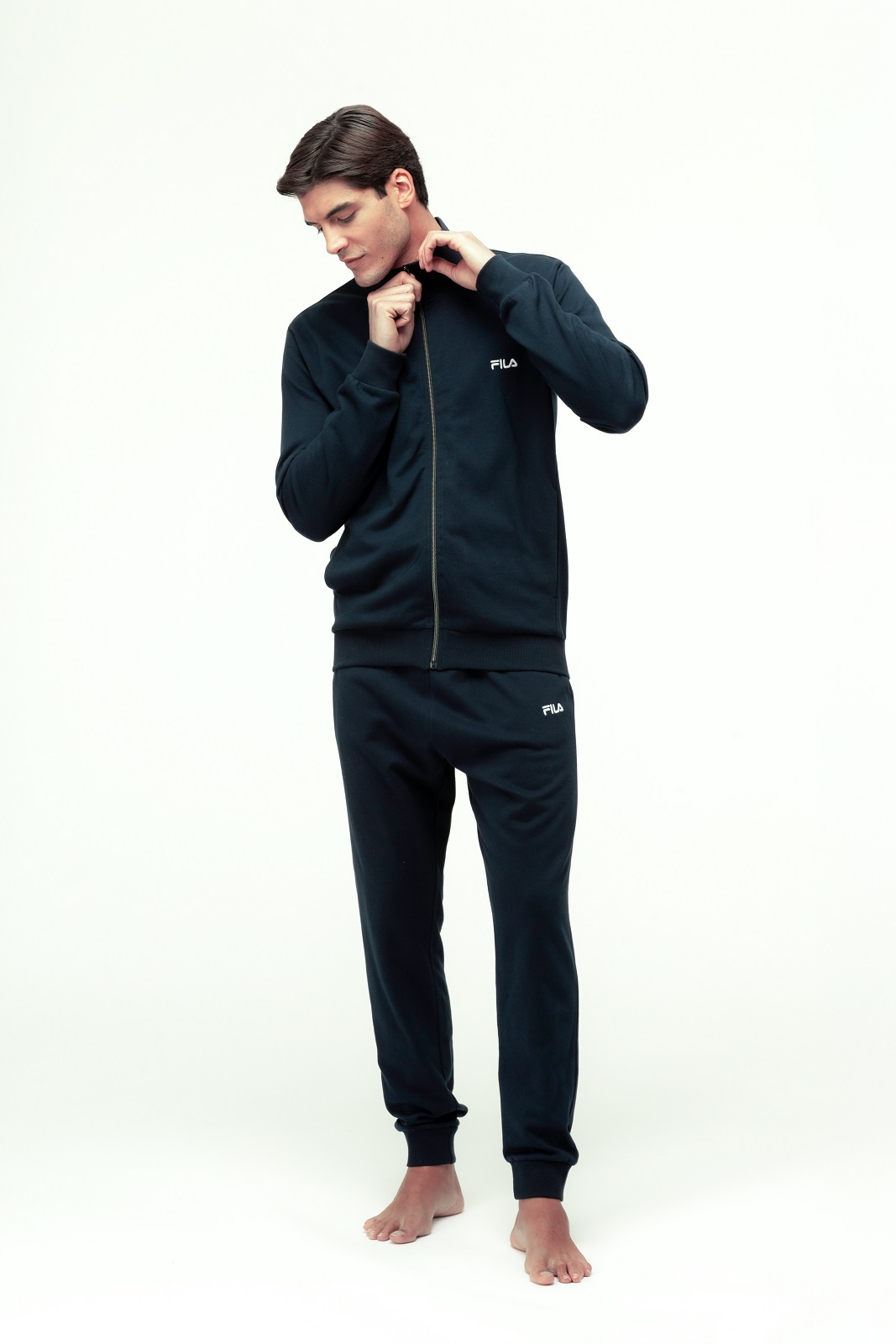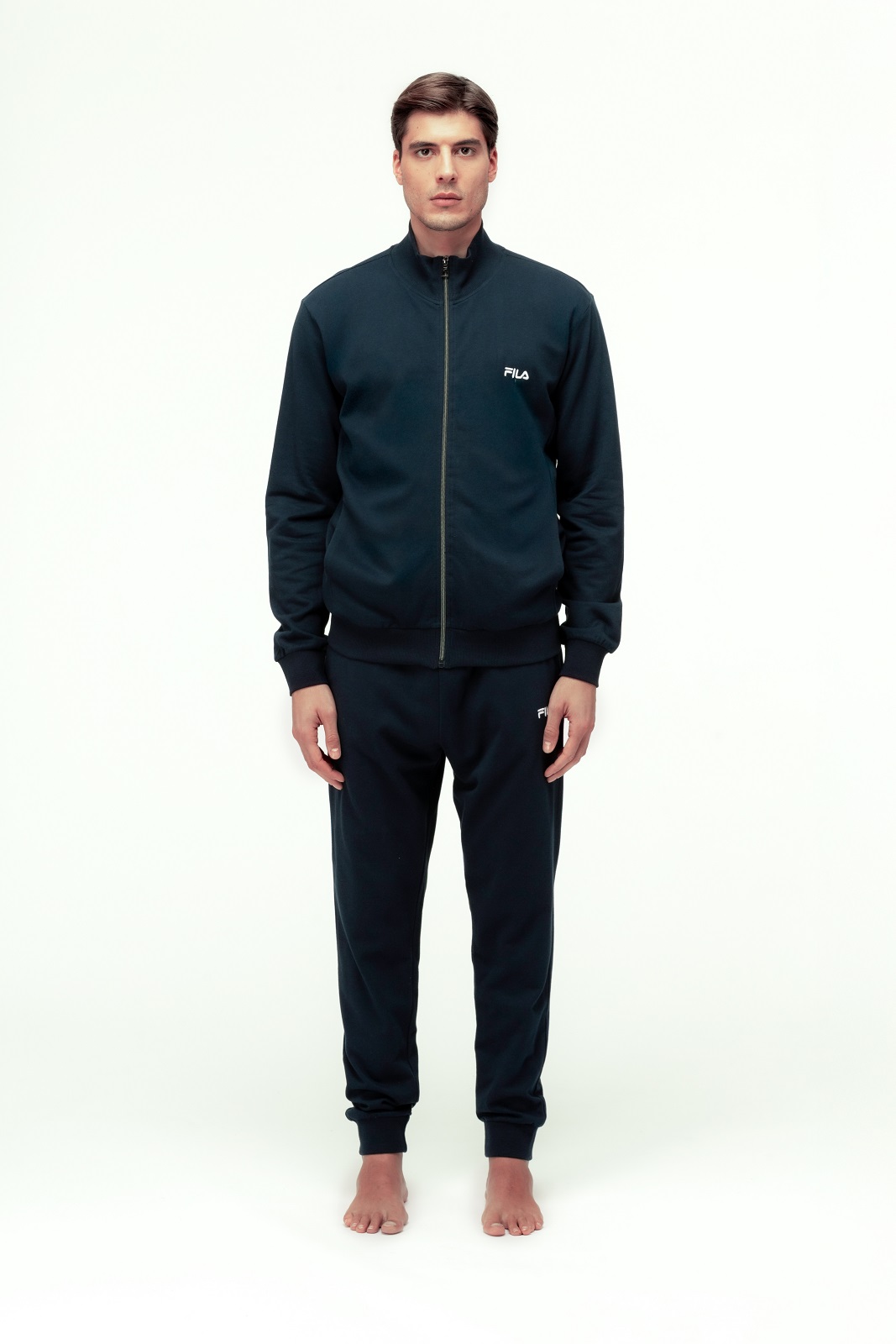 Tuta da uomo FILA in caldo cotone felpato, composta da felpa full zip e pantalone con polsini. Ideale per il relax quotidiano con un tocco sportivo e moderno.