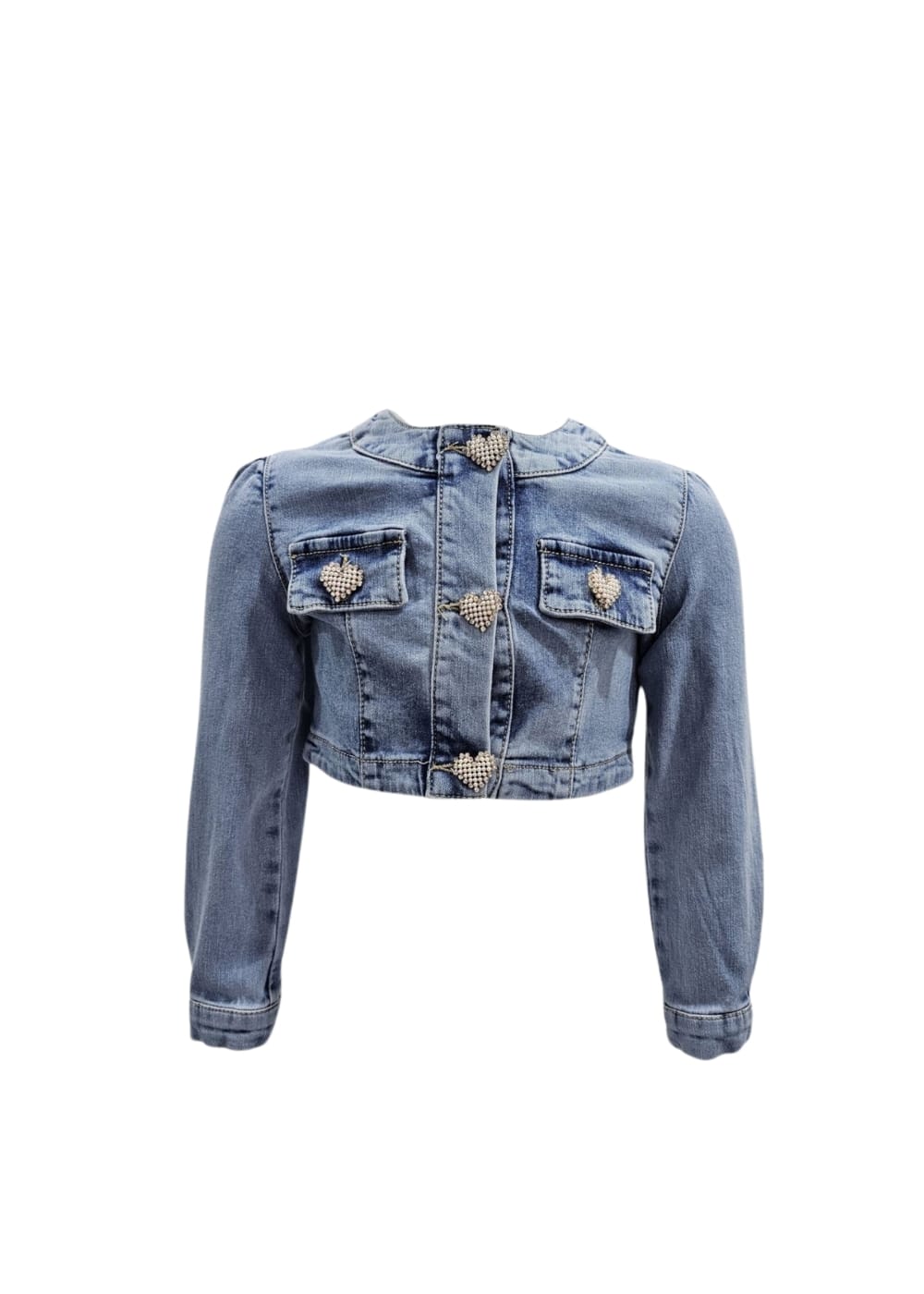 Giacca Denim Bottoni con brillantini a forma di Cuore ย 98%COT 2% EA