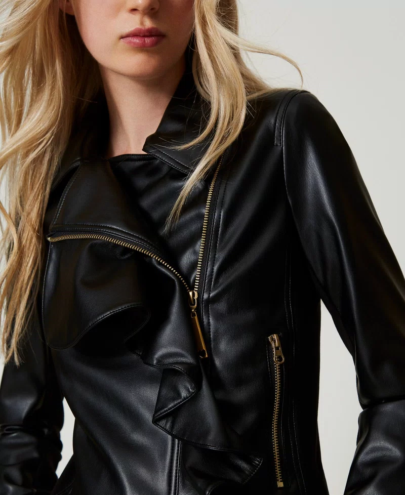 GIACCA CHIODO EFFETTO PELLE CON VOLANT TWINSET