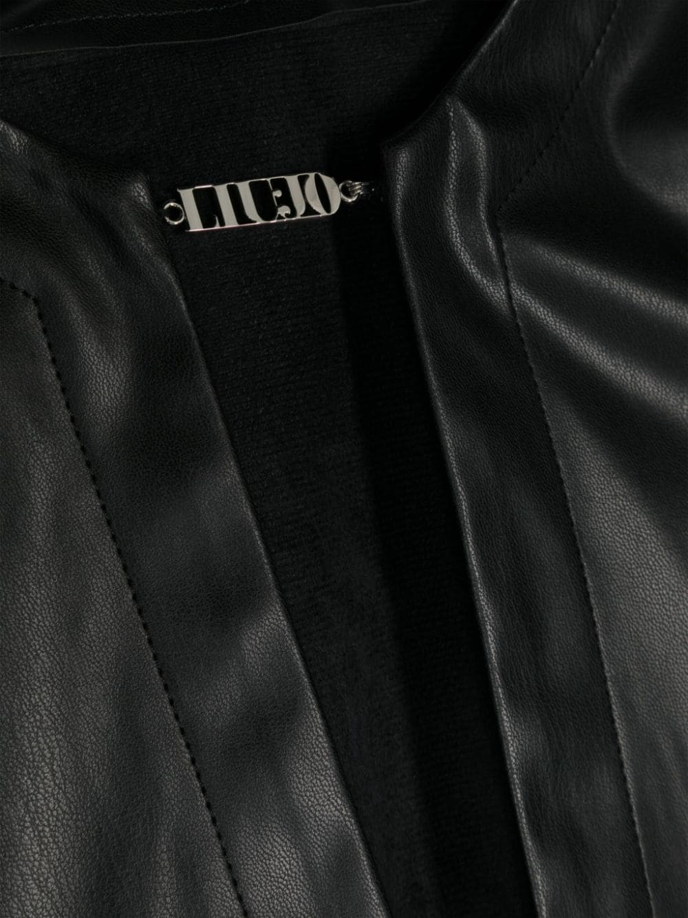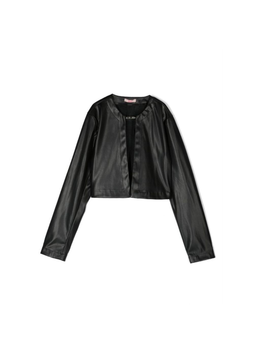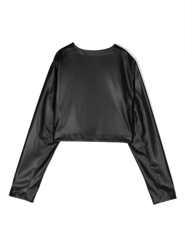 nero pelle cruelty-free scollo rotondo parte frontale aperta senza chiusure maniche lunghe orlo dritto crop