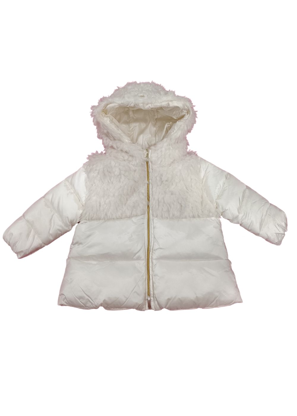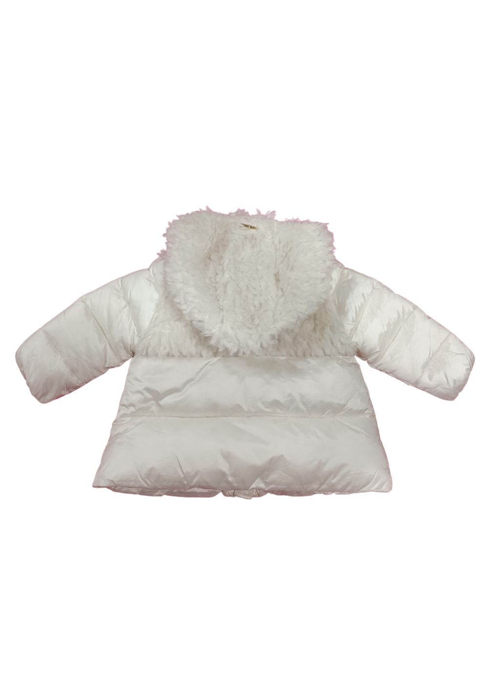 Giaccone imbottito in nylon Imbottitura in ovatta Trapuntatura a righe Dettaglio in teddy Tasche a filetto con zip sui lati Chiusura con zip