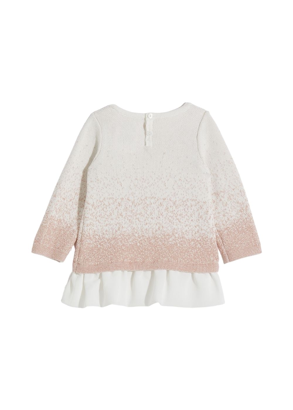 Vestito corto in maglia Filati in misto cotone Lavorazione jacquard dรฉgradรฉ Interventi in lurexยฎ Fiocco ricamato sul davanti Chiusura con bottoni a pressione sul dietro Volants sul fondo Questo abito sarร consegnato all’interno di un’elegante confezione Composizione: 45% Viscosa, 27% Cotone, 18% Poliammide, 10% Poliestere