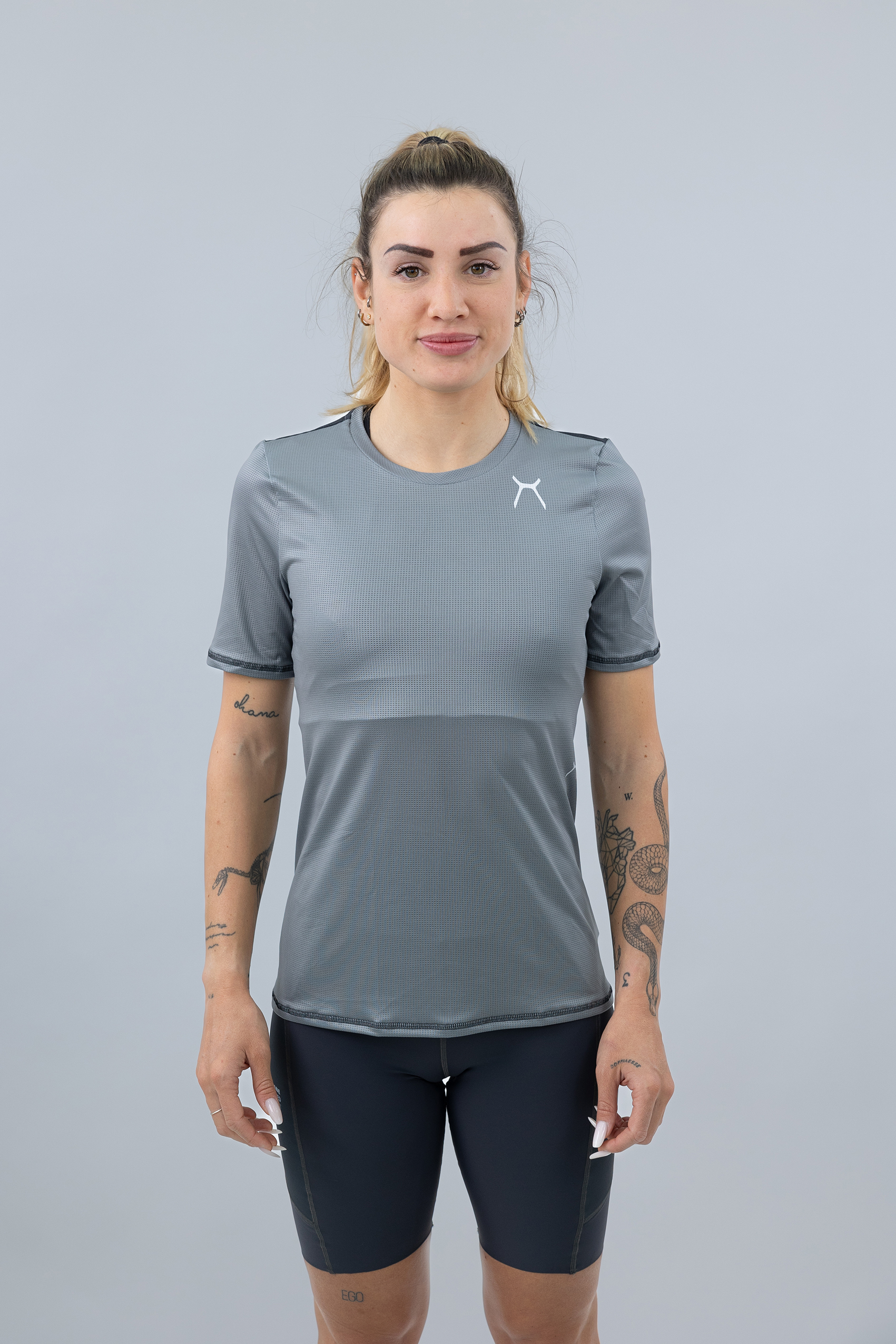 La nostra t-shirt da running Hand a maniche corte รจ il capo perfetto per le corse in condizioni di temperatura moderata o calda. Realizzata con un tessuto principale leggero e altamente traspirante, assicura un comfort ottimale durante l’attivitร fisica.