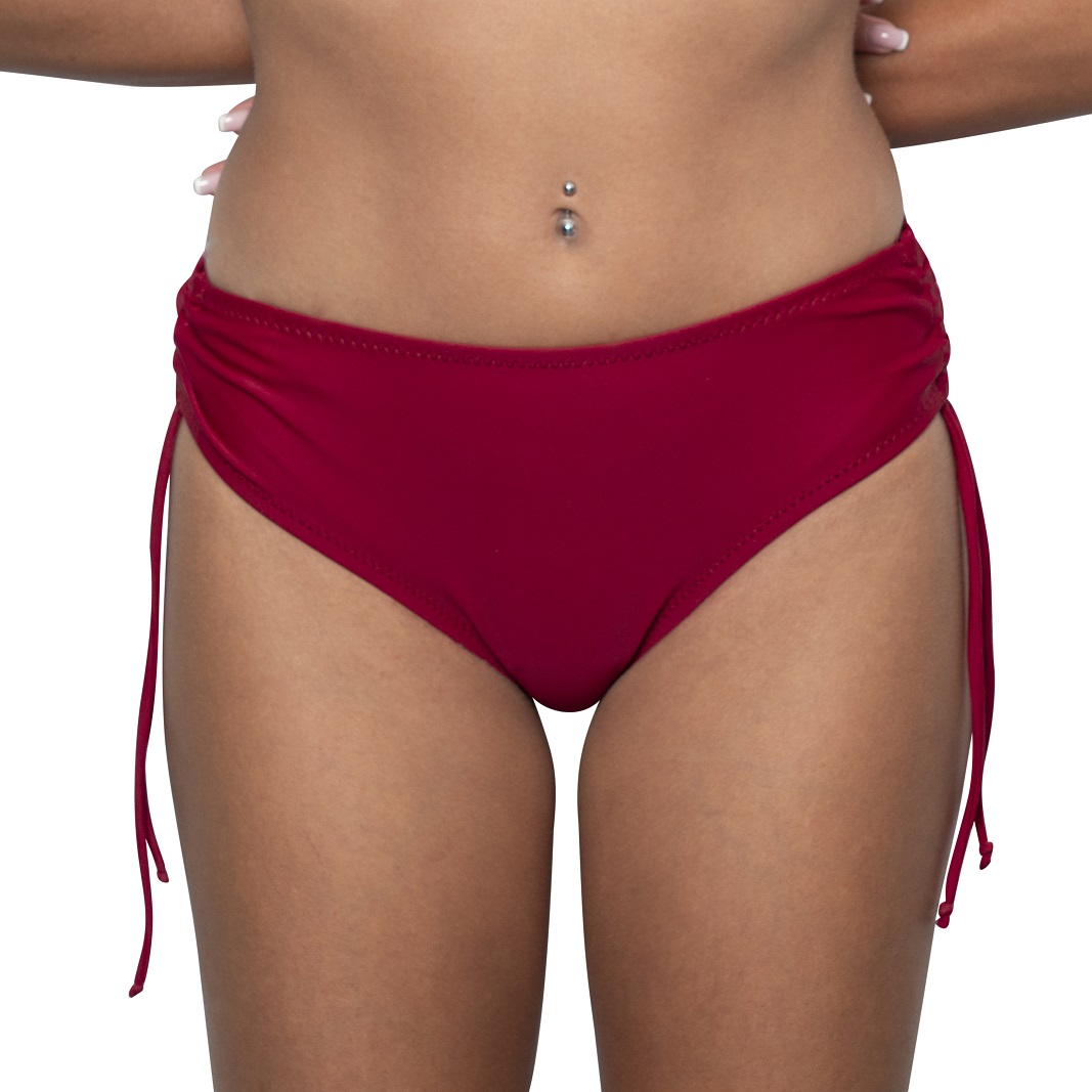 Slip bikini da donna con coulisse regolabile sui fianchi, disponibile in nero, fucsia, blu, oltremare, verdeacqua e rosso. Comodo, versatile e perfetto da abbinare con top bikini tono su tono o a contrasto.