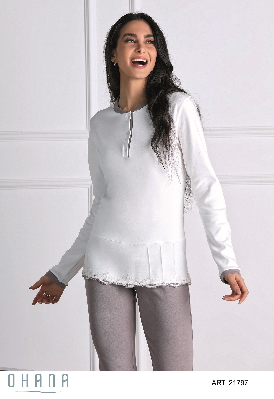 Il PIGIAMA IN CALDO COTONE CON PIZZO ย fa parte della collezione autunno/inverno del brandย Ohana.