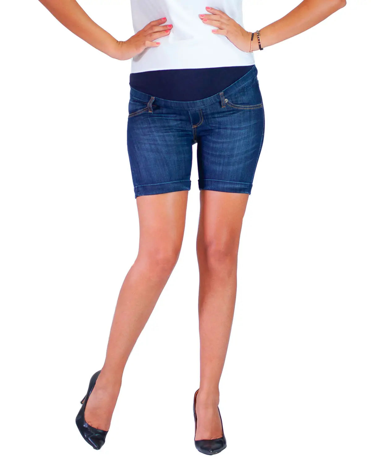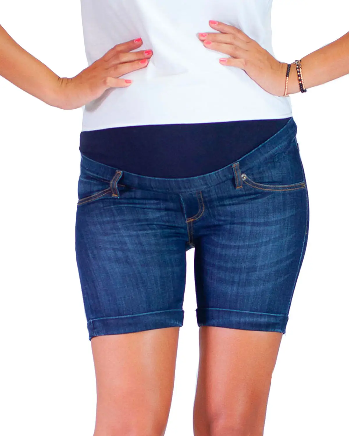 Short in jeans premaman, dal primo all’ultimo mese di gravidanzaTessuto: 97% Cotone, 3% Elastane (jeans elasticizzato) Modello EstivoElastico regolabile con bottone dentro la cintaFascia addominale in jersey di cotone anallergico