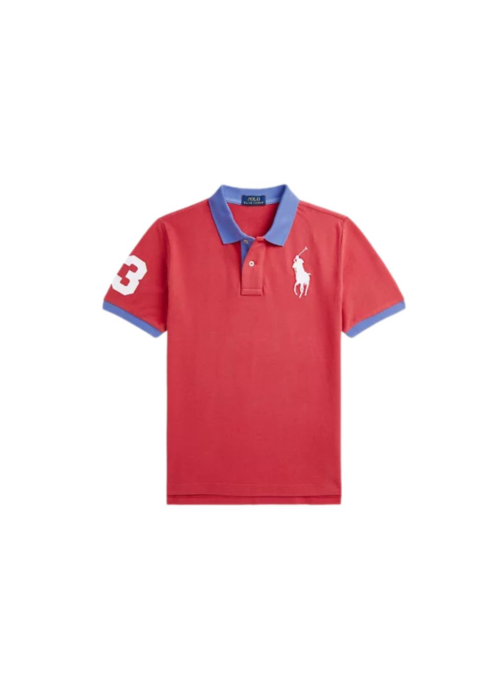 La taglia M ha una lunghezza di 60,3 cm sul davanti e 62,9 cm sul retro Esclusivo ricamo Big Pony sul lato sinistro del torace Colletto polo a coste. Chiusura a due bottoni Maniche corte con fondo manica a coste Numero “3” in twill applicato sulla manica destra Orlo posteriore più lungo 100% Cotone