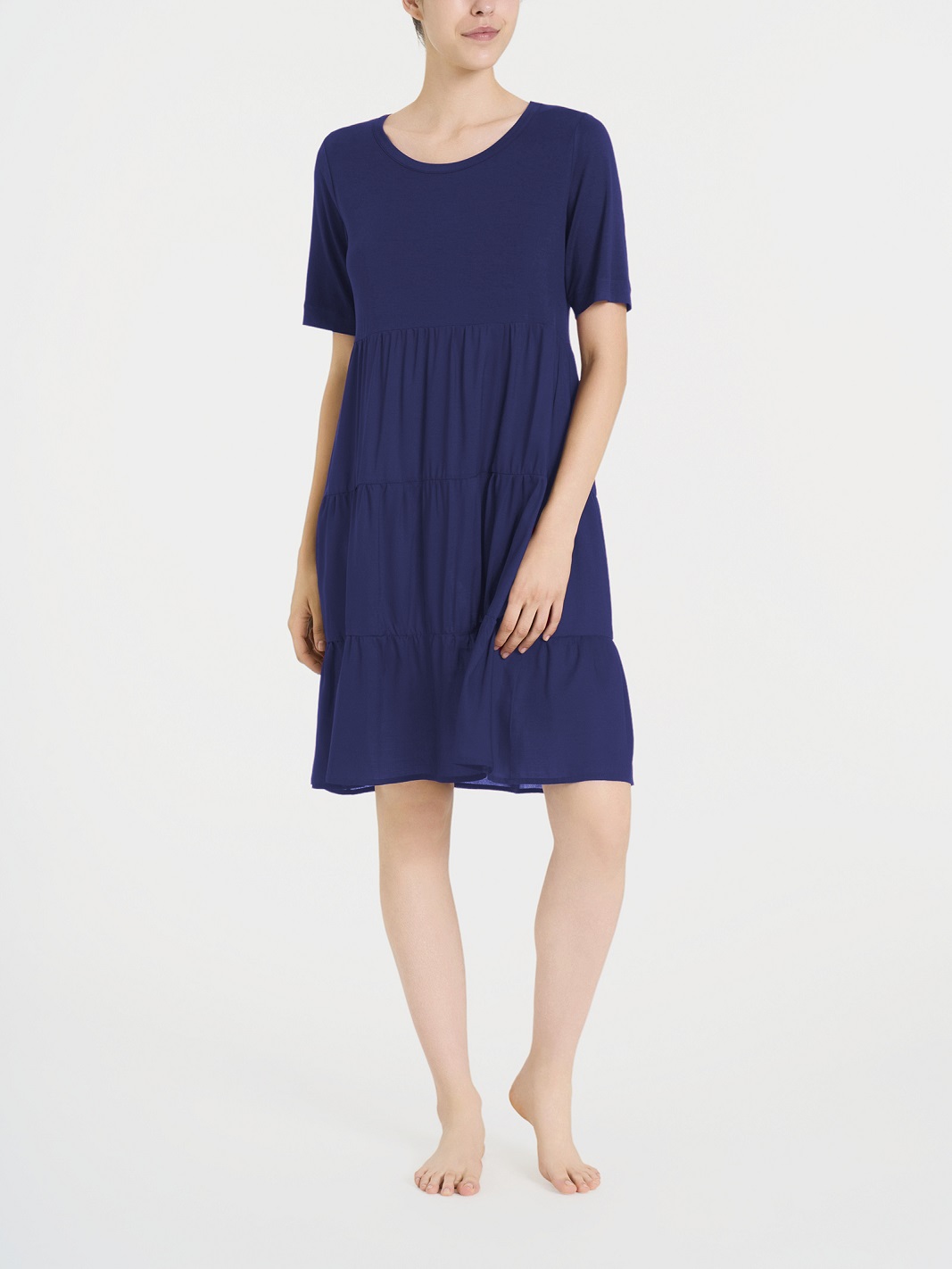 Il girocollo pulito e le maniche corte a kimono rendono questo abito mare donna manica kimono RAGNO un capo elegante e semplice allo stesso tempo. Le balze strutturate aggiungono un tocco femminile senza rinunciare alla comoditร .