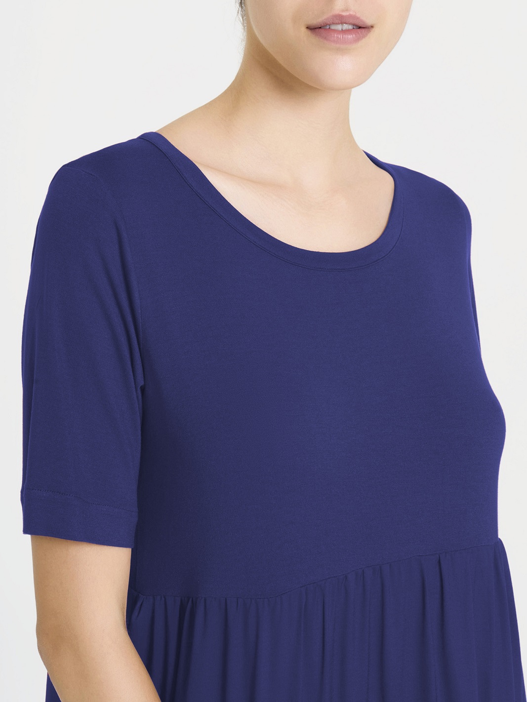 Realizzato in jersey di viscosa elasticizzato sulla parte superiore e tela di ecoseta sulla gonna, questo abito garantisce traspirabilitร e leggerezza anche nelle giornate piรน calde. Il mix di fibre naturali lo rende eco-friendly e confortevole sulla pelle.