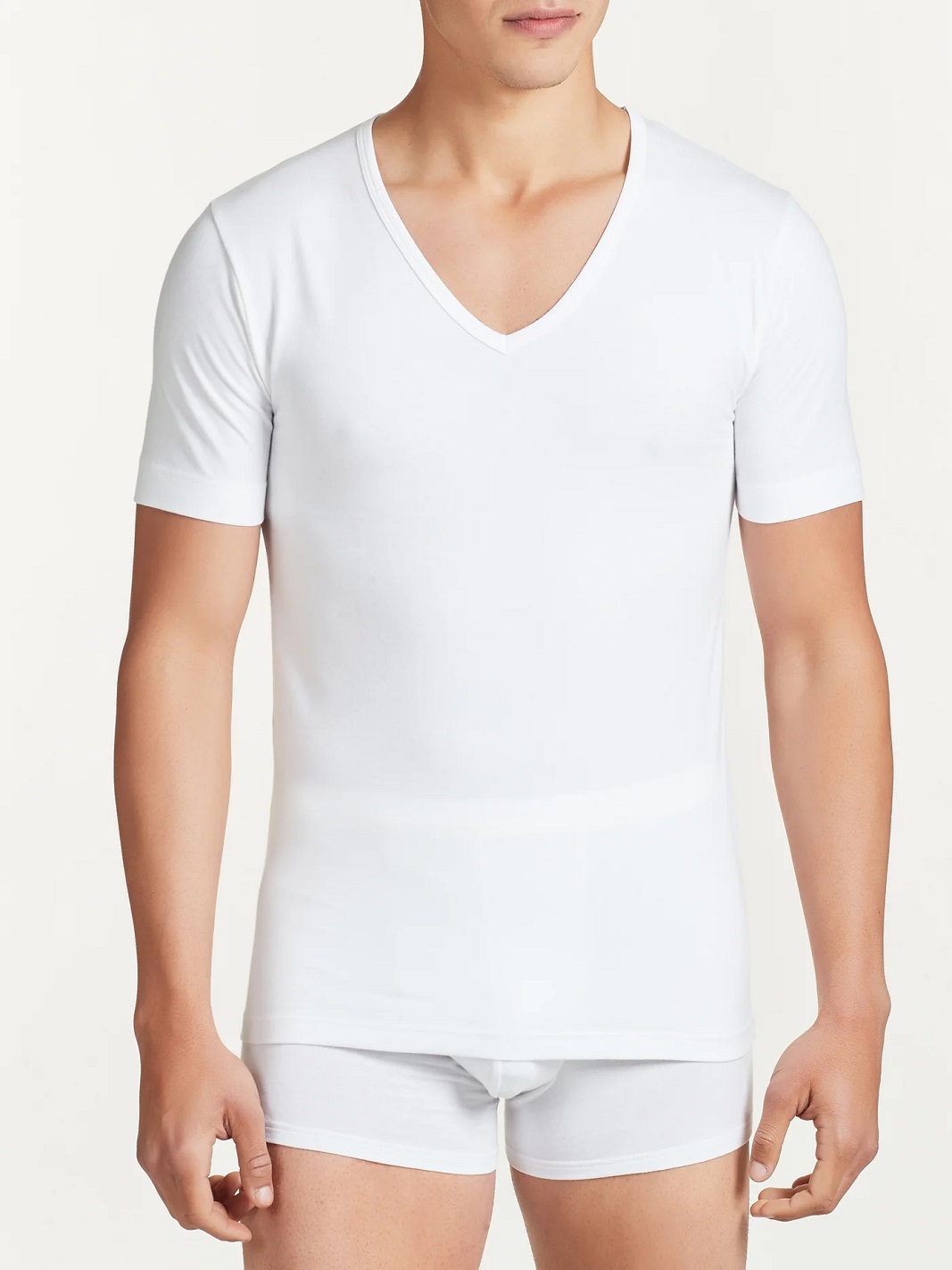 Maglietta uomo a manica corta con scollo a V in morbido jersey di cotone elasticizzato. Parte della linea Dynamic di RAGNO, offre comfort e vestibilitร quotidiana. Confezione bipack dello stesso colore.