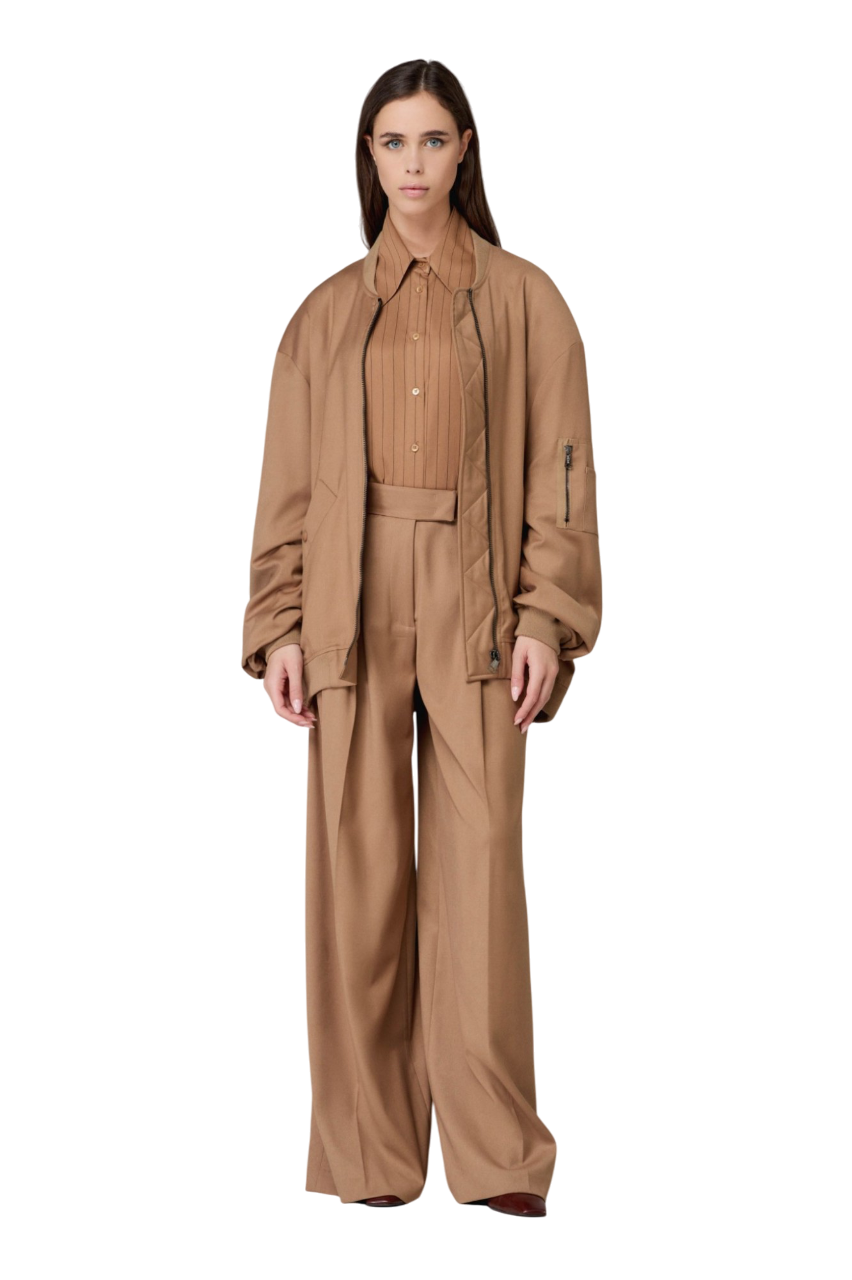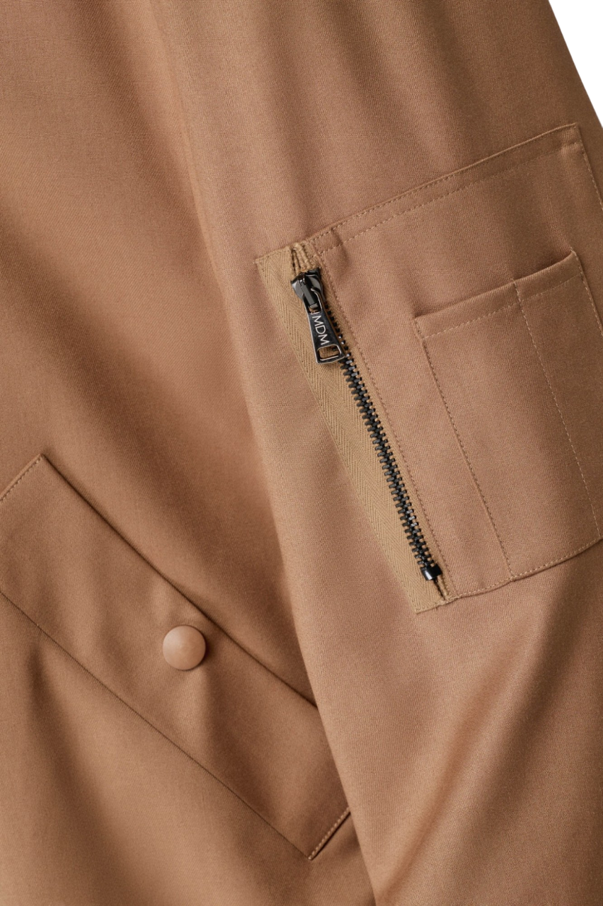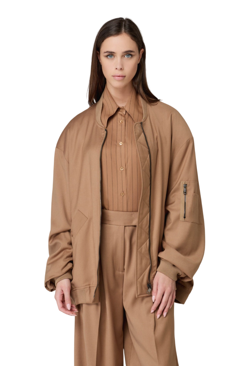 Dettagli prodotto Raven – Bomber Codice: MMABW01373_TMTS0172 Colore: Cammello Composizione: 66% Poliestere 31% Viscosa 3% Elastan Stretch Made in Italy Mar de Margaritas โข Collezione AI25