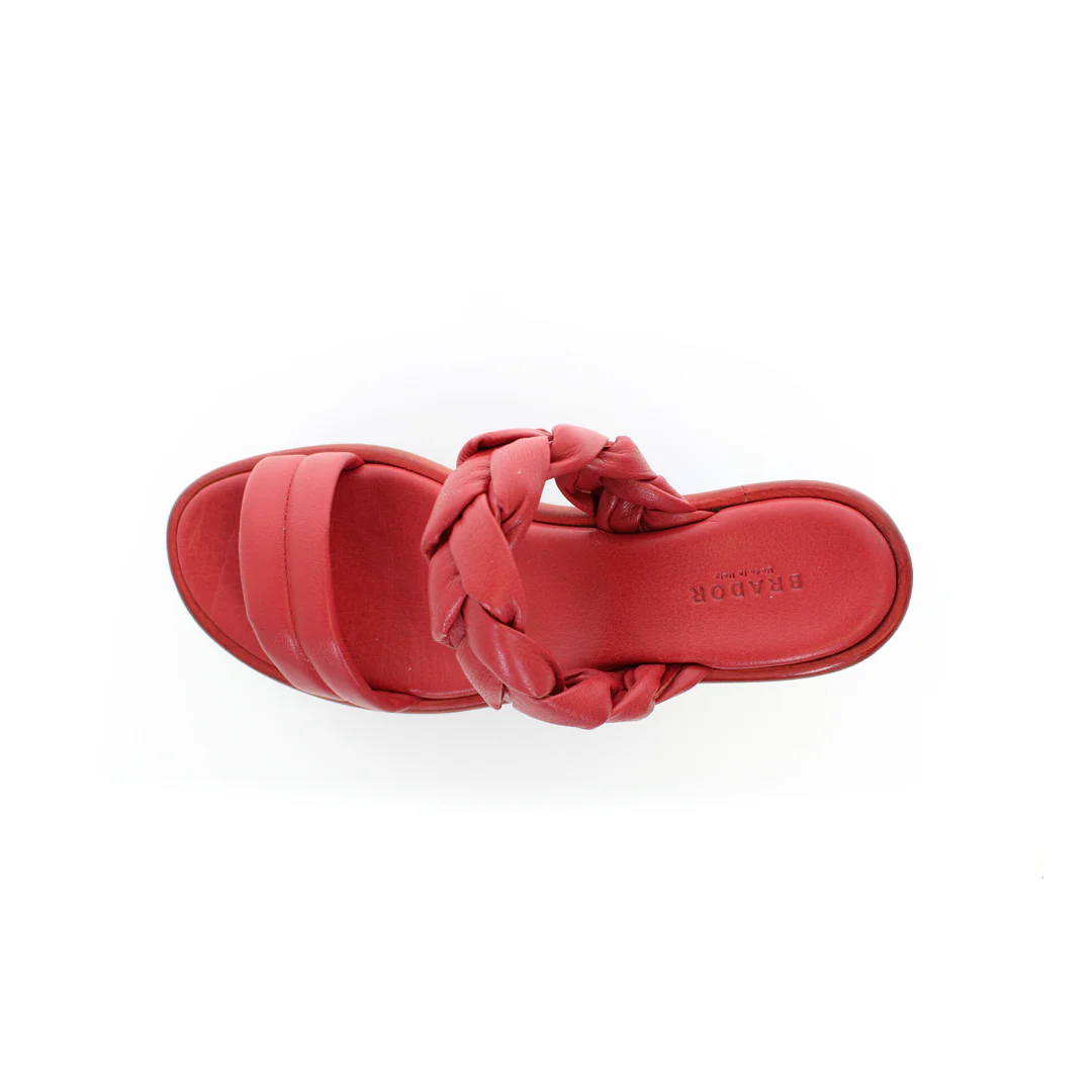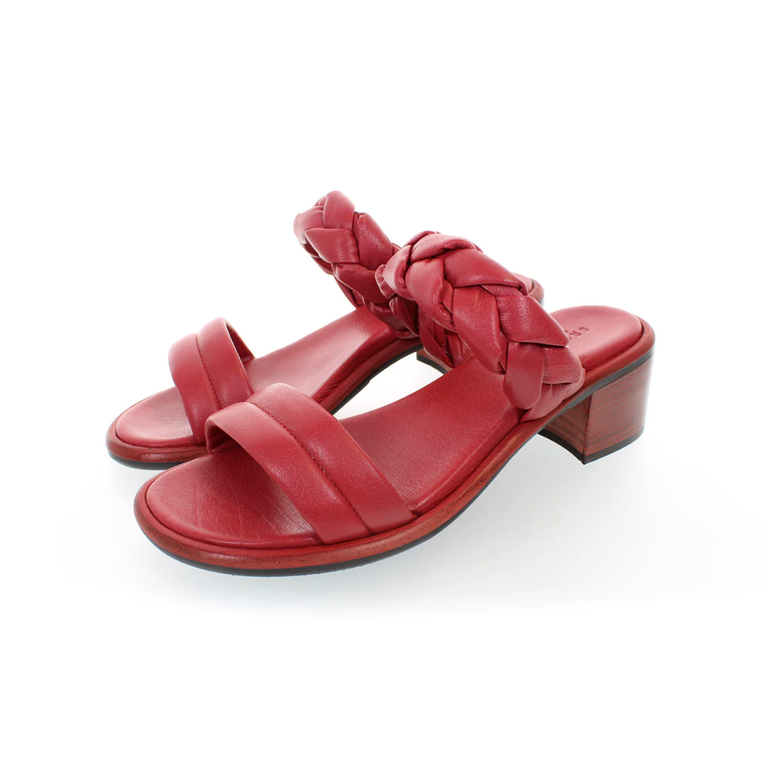 Sandalo con tacco con pellame rifinito vegetale. Tomaia: treccia a mano in pelle di bufalo vegetale naturale Plantare: soft-comfort anatomico Battistrada di gomma Tacco: tacco in cuoio con guardolo in pelle, altezza 4,5 cm Fatto a mano in Italia Codice Prodotto: 96-927 Cerise