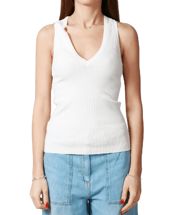 Top a coste con scollo a V firmato Elisabetta Franchi