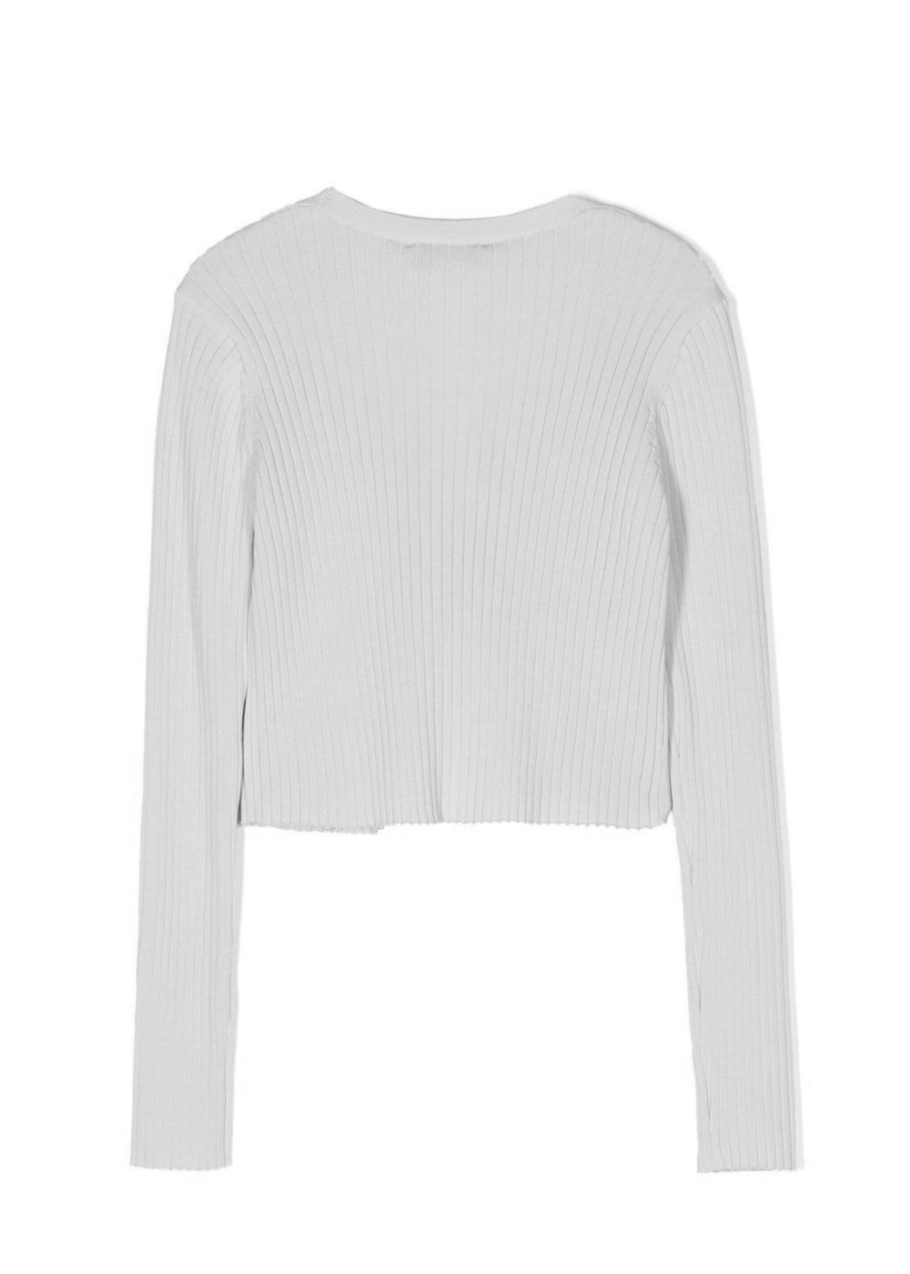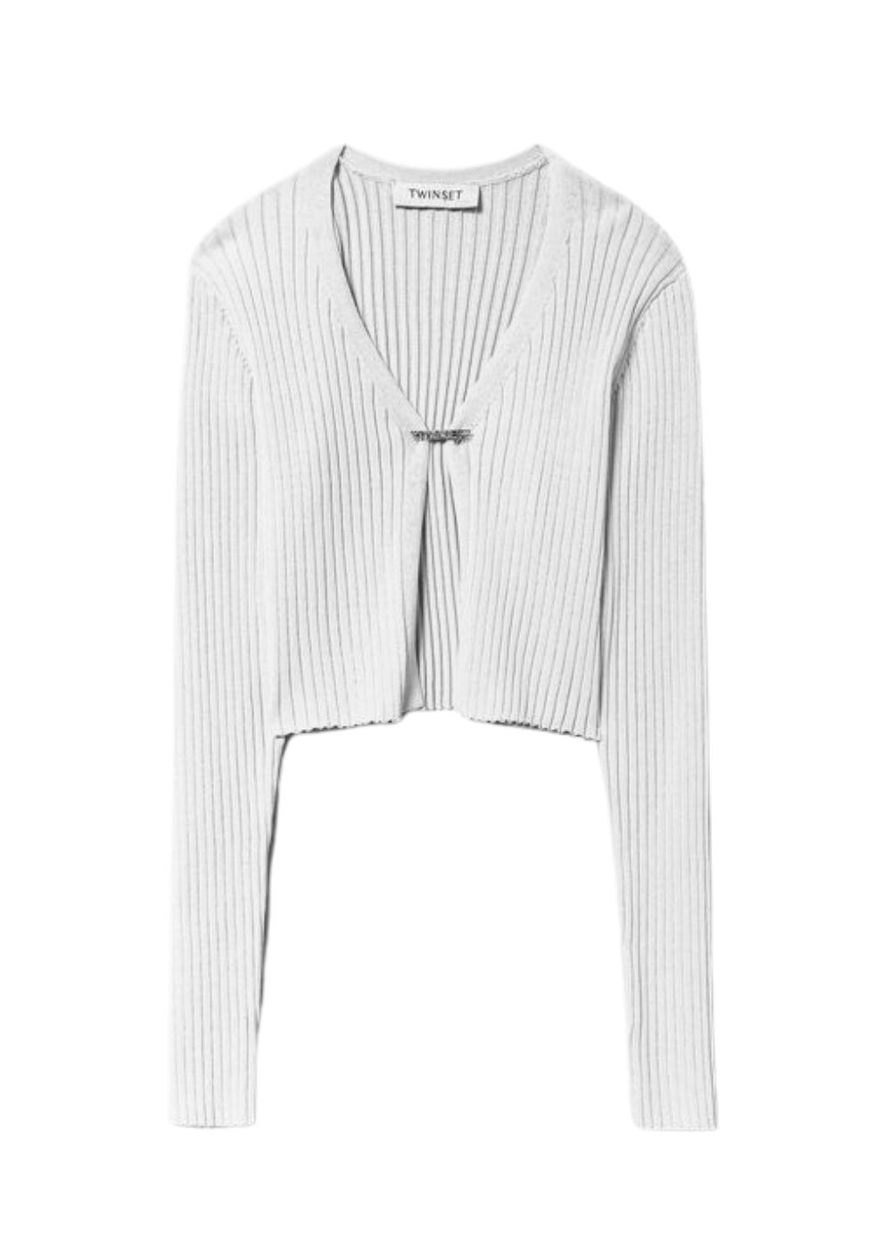 Cardigan fitted in maglia di viscosa stretch Coste larghe Chiusura al centro con spilla logo rimovibile, Maniche lunghe