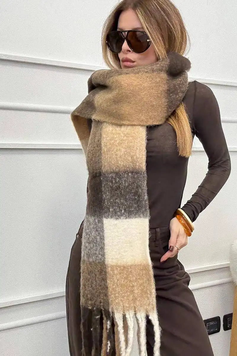 - Maxi sciarpa stampa check per una calda protezione contro il freddo