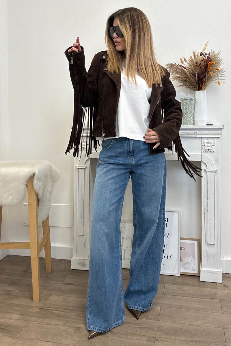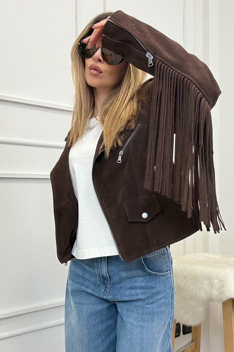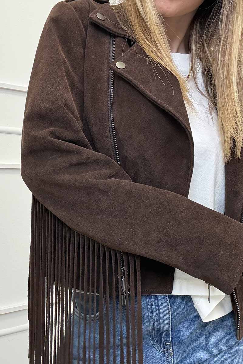 Vicolo Biker Scamosciato Vera Pelle Moro