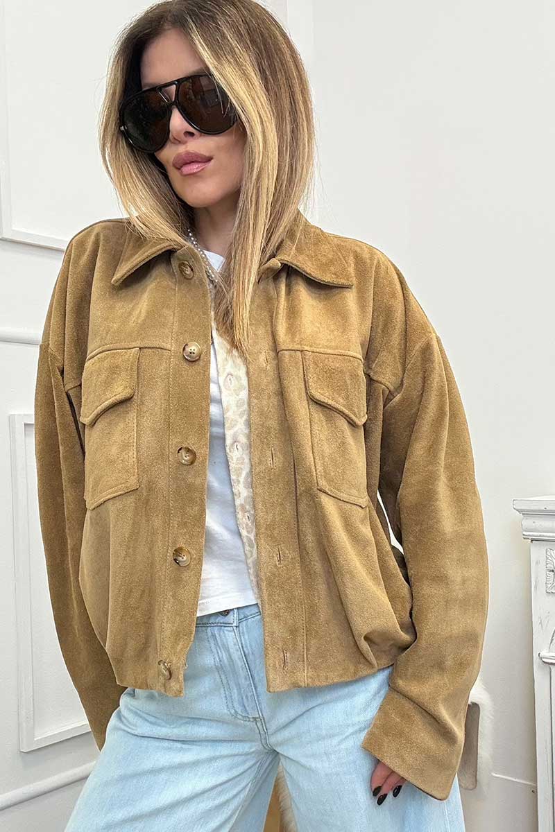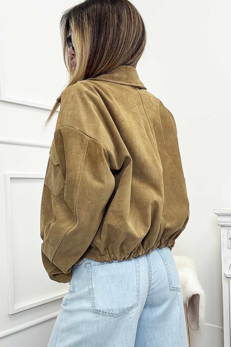 Vicolo Bomber Scamosciato Vera Pelle Miele