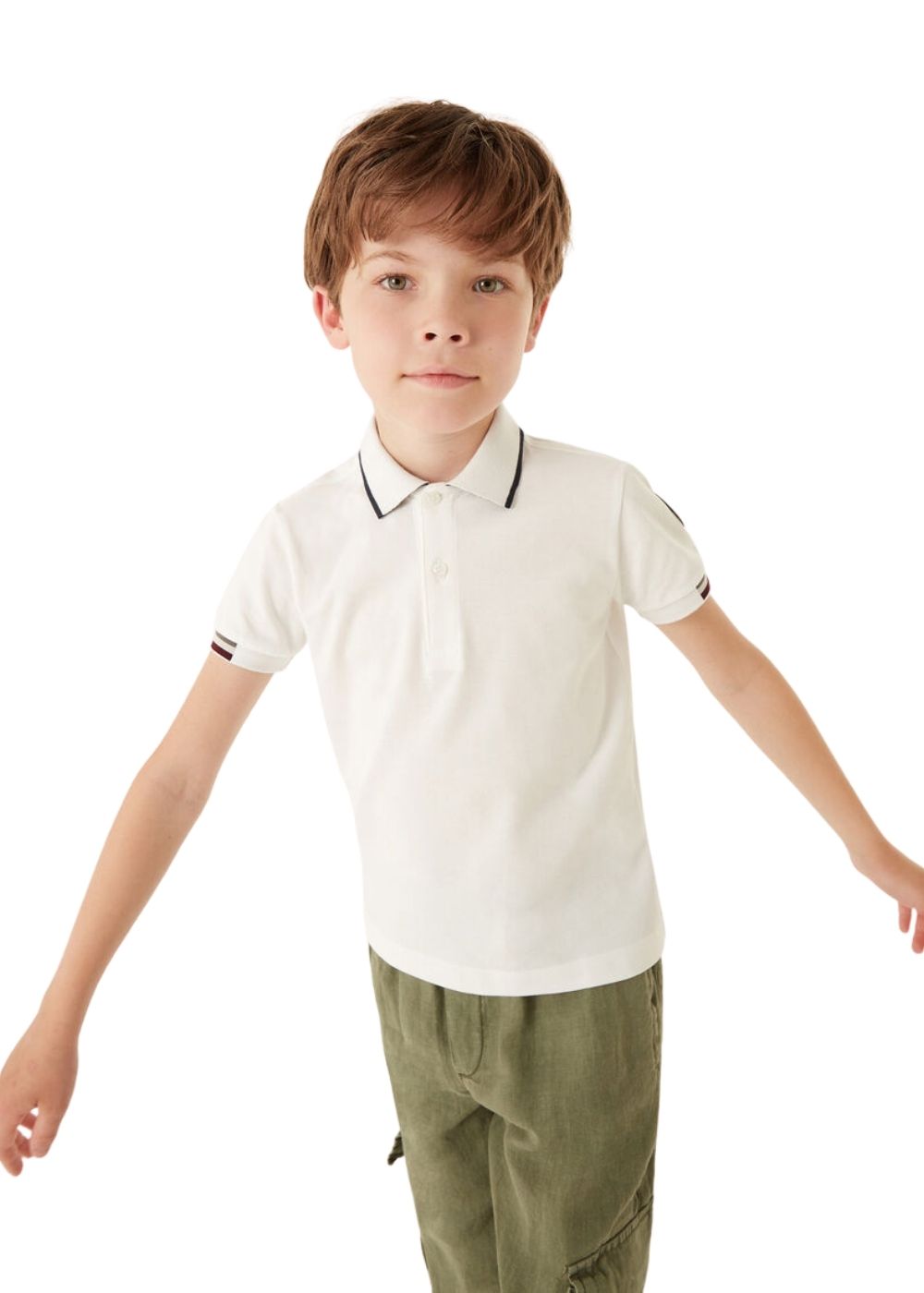 Polo da bambino in piqué di cotone elasticizzato con logo sulla manica. Alza il colletto per scoprire un nuovo colore: questa polo si adatta ad ogni mood.