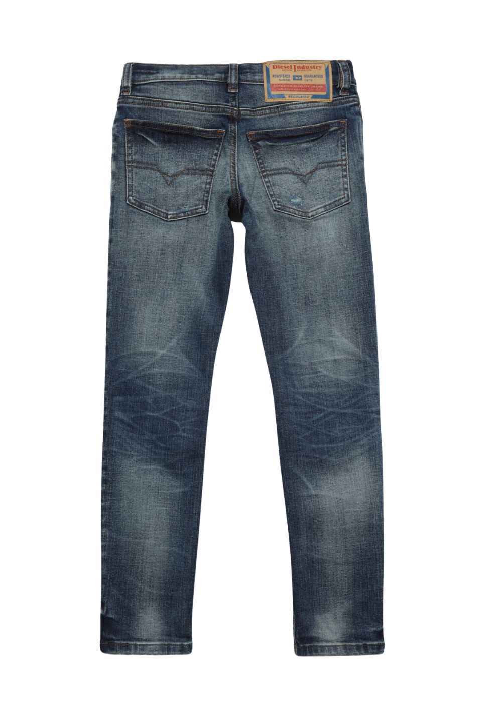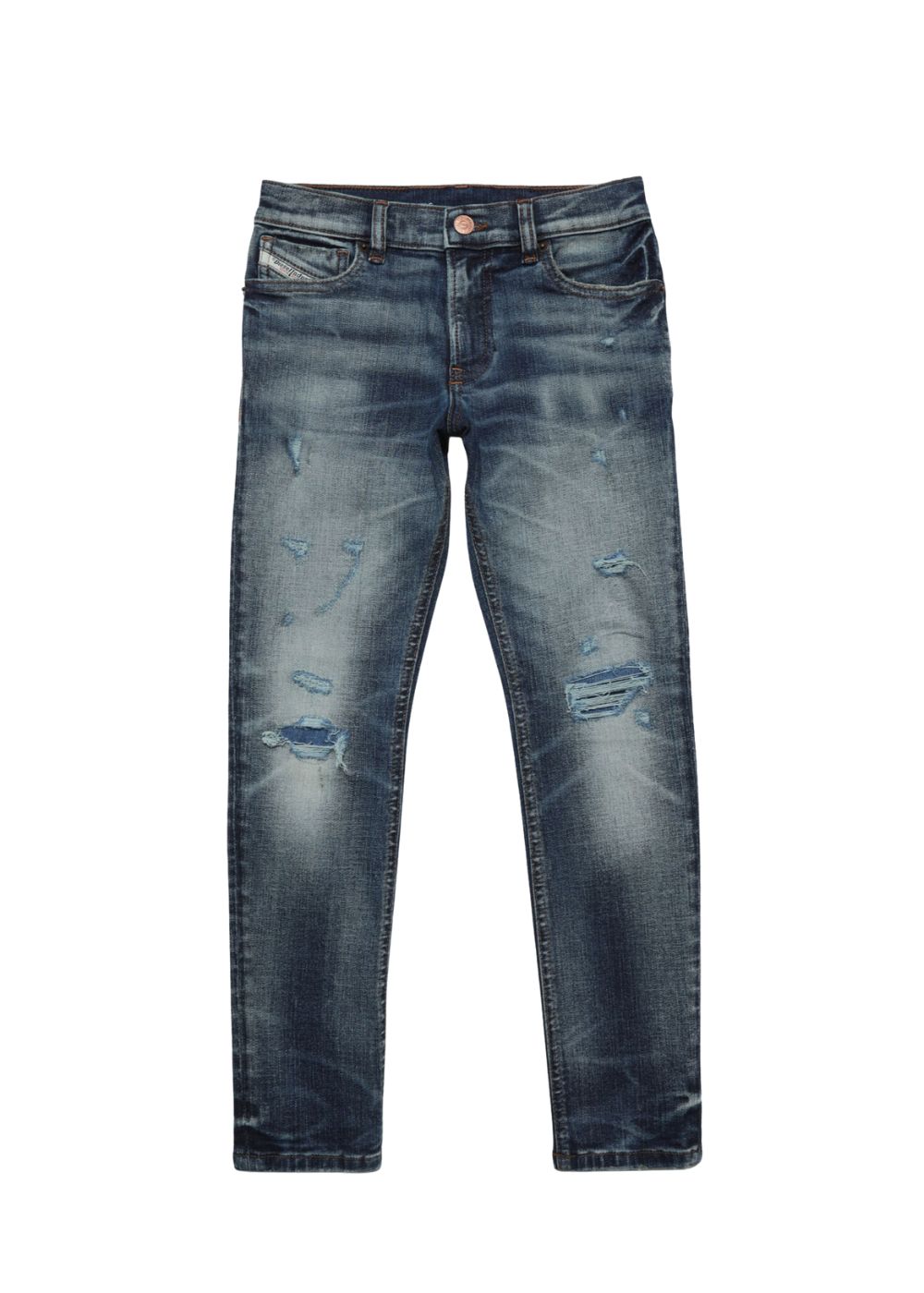 Pantaloni slim fit con vita regular e gamba straight. Un modello da bambino versatile, che si adatta a ogni situazione e che ben rappresenta l’attitudine Diesel originale. Il denim blu medio è leggermente stretch e rifinito con abrasioni e dettagli ripped and repaired. Il trattamento stonewash conferisce una maggiore morbidezza al tessuto, mentre la tecnica spray crea un aspetto vissuto autentico.