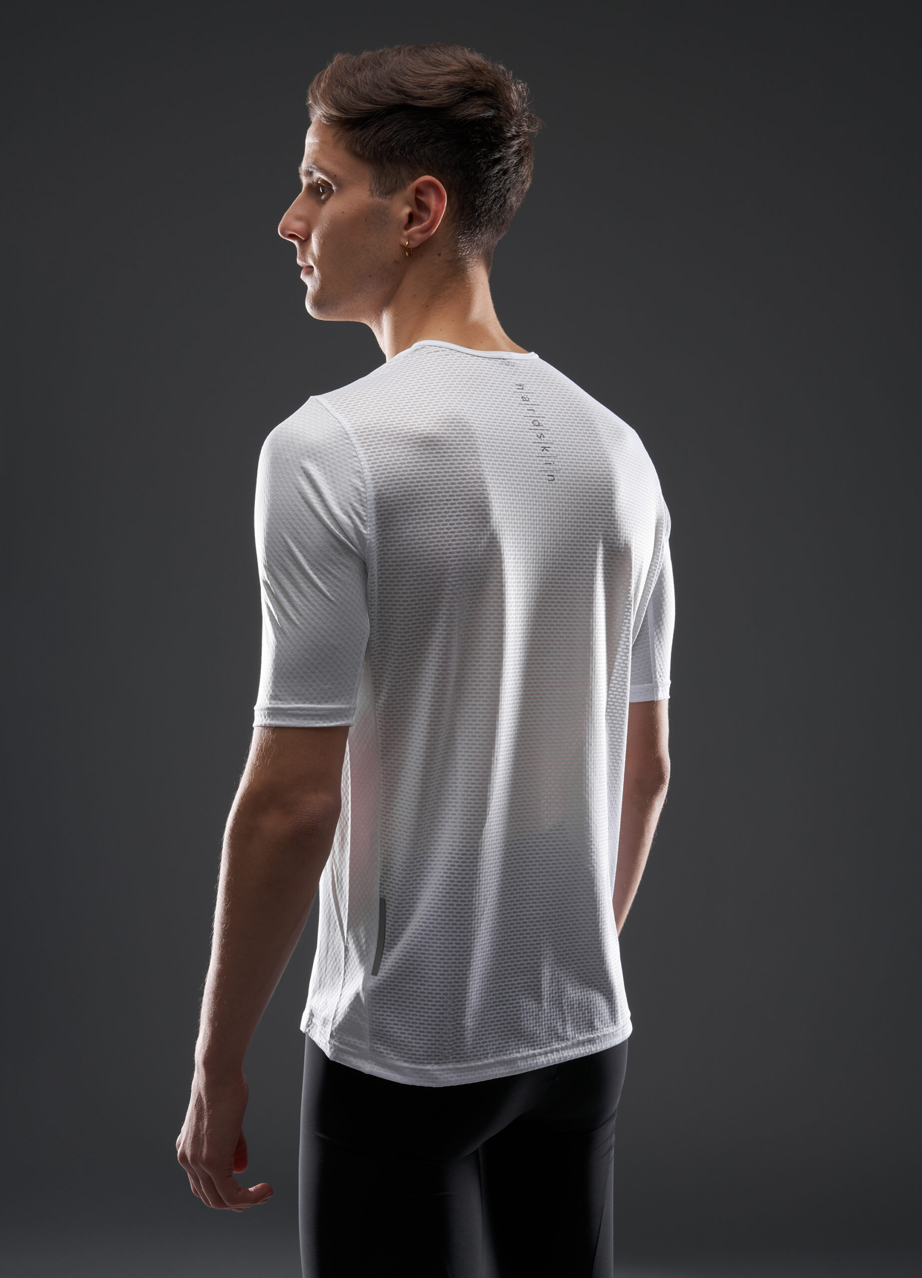 Le maniche aerodinamiche allungate e aderenti, sviluppate e testate in galleria del vento, sono studiate per ridurre al minimo la resistenza dell’aria, permettendoti di guadagnare secondi preziosi nelle tue uscite più veloci. La struttura del tessuto a tre zone è stata ottimizzata per garantire ventilazione strategica e dissipazione del calore nelle aree di maggiore necessità, mantenendo il corpo fresco e asciutto anche durante gli sforzi più intensi.
