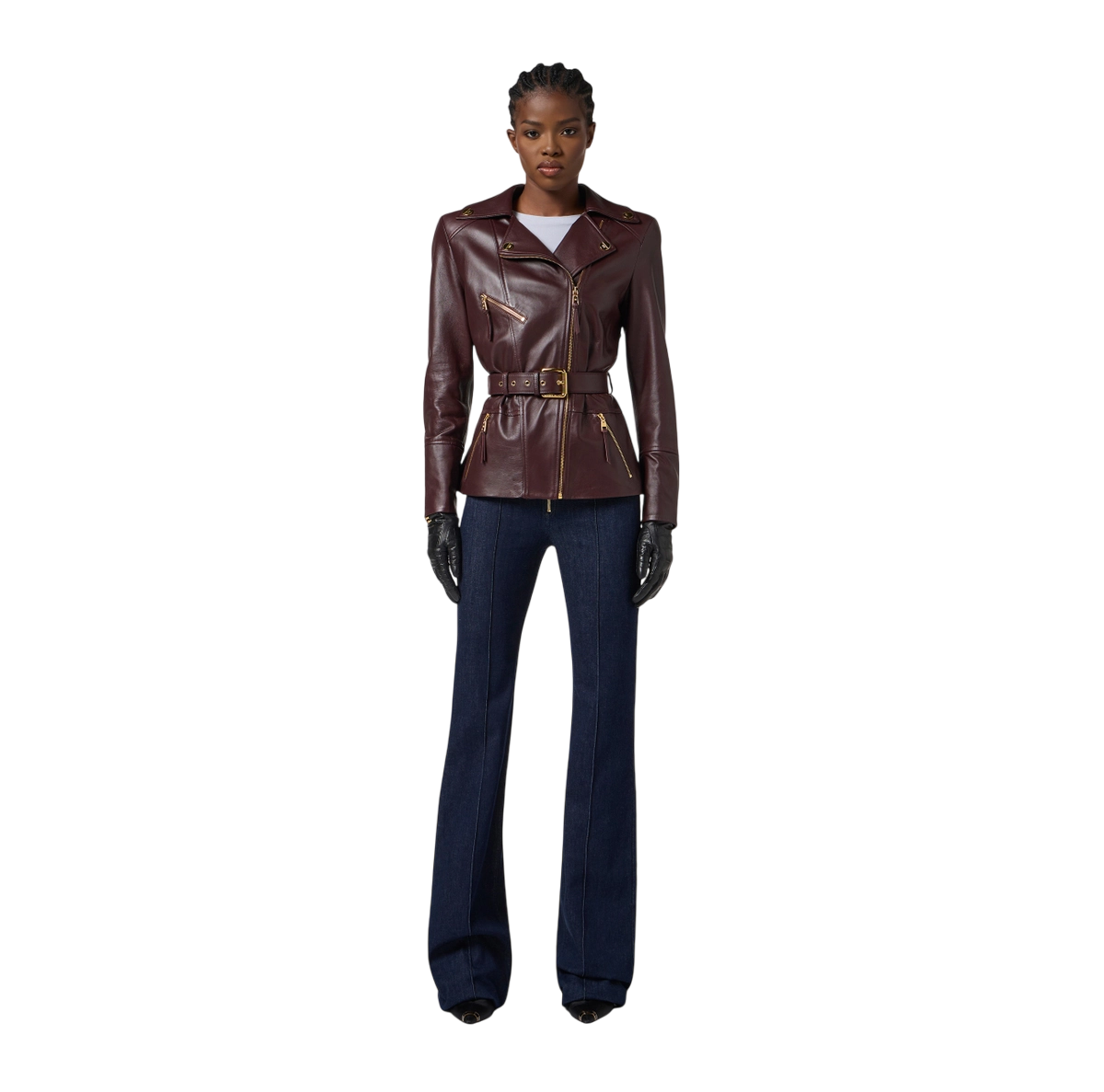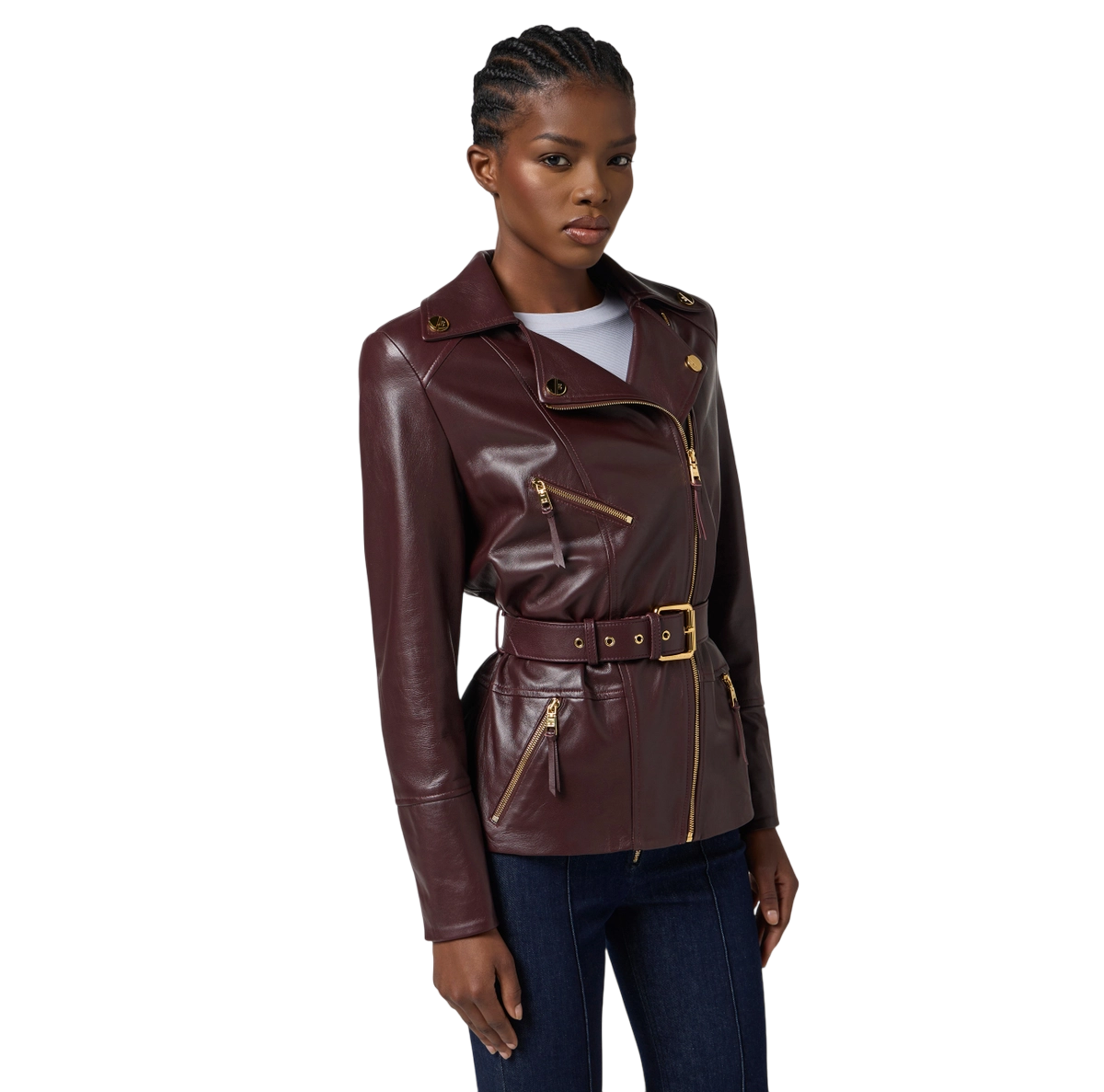 Giacca biker in pelle merlot – elisabetta franchi