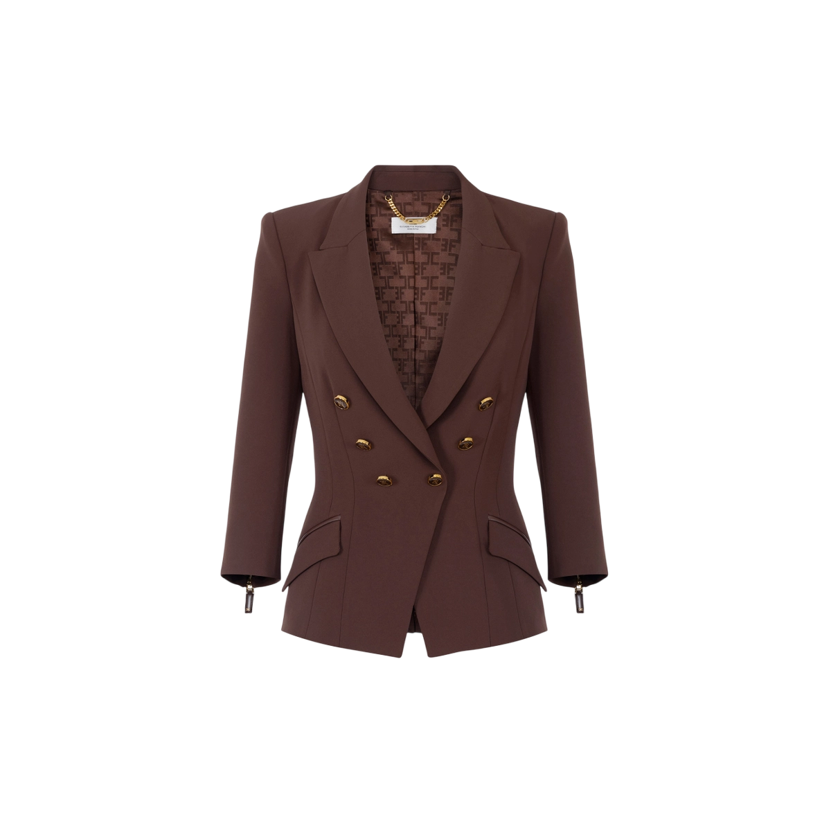 Giacca in doppio crêpe dalla vestibilità slim. Il blazer ha spalle strutturate, rever a lancia, maniche ¾, patte con filetti in tono. Le zip al fondo manica regalano dettagli inediti, i bottoni smaltati impreziosiscono il capo. Parte della collezione Essential, per costruire il guardaroba perfetto.