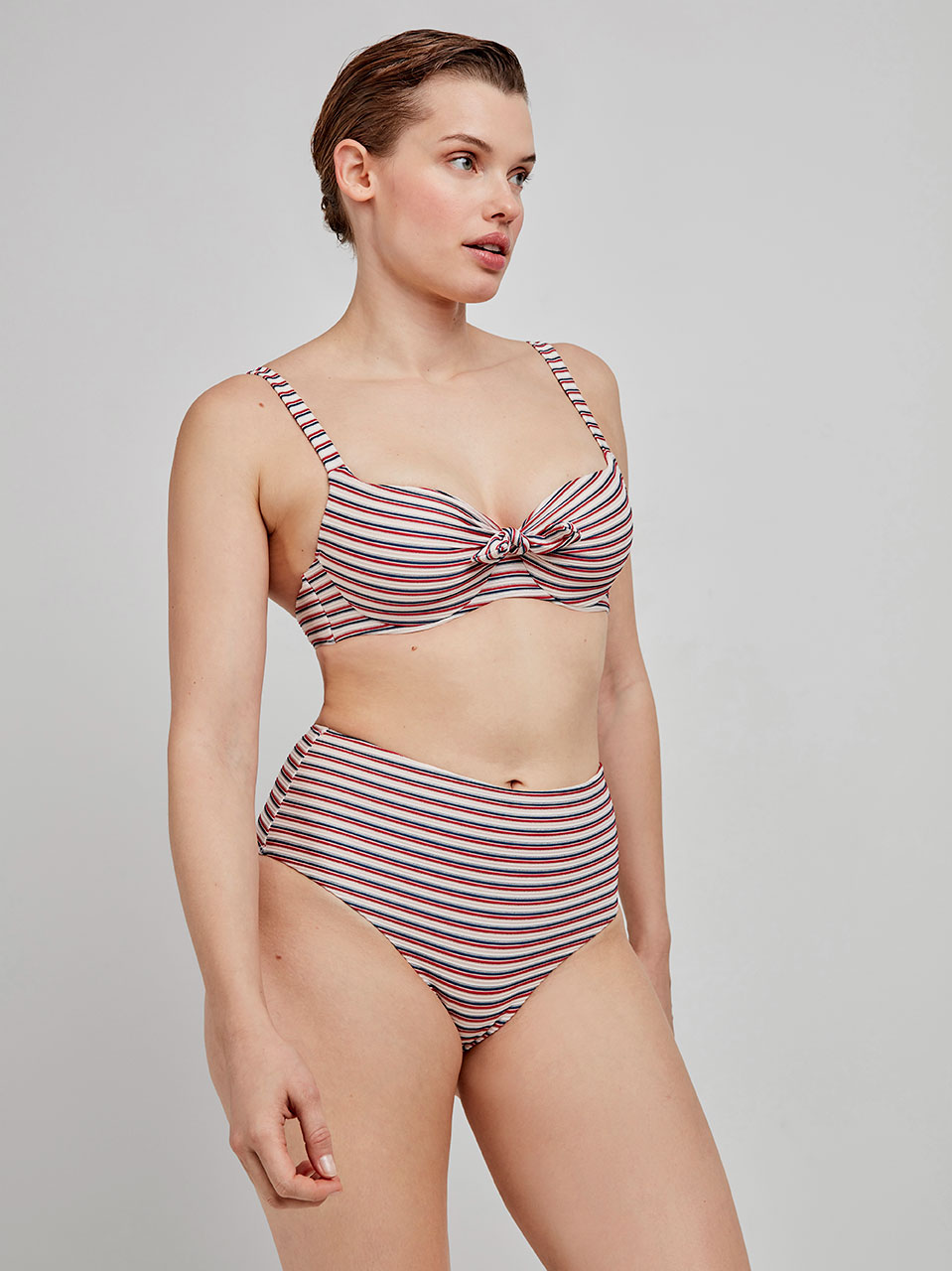 Bikini a righe vita alta con coppa differenziata