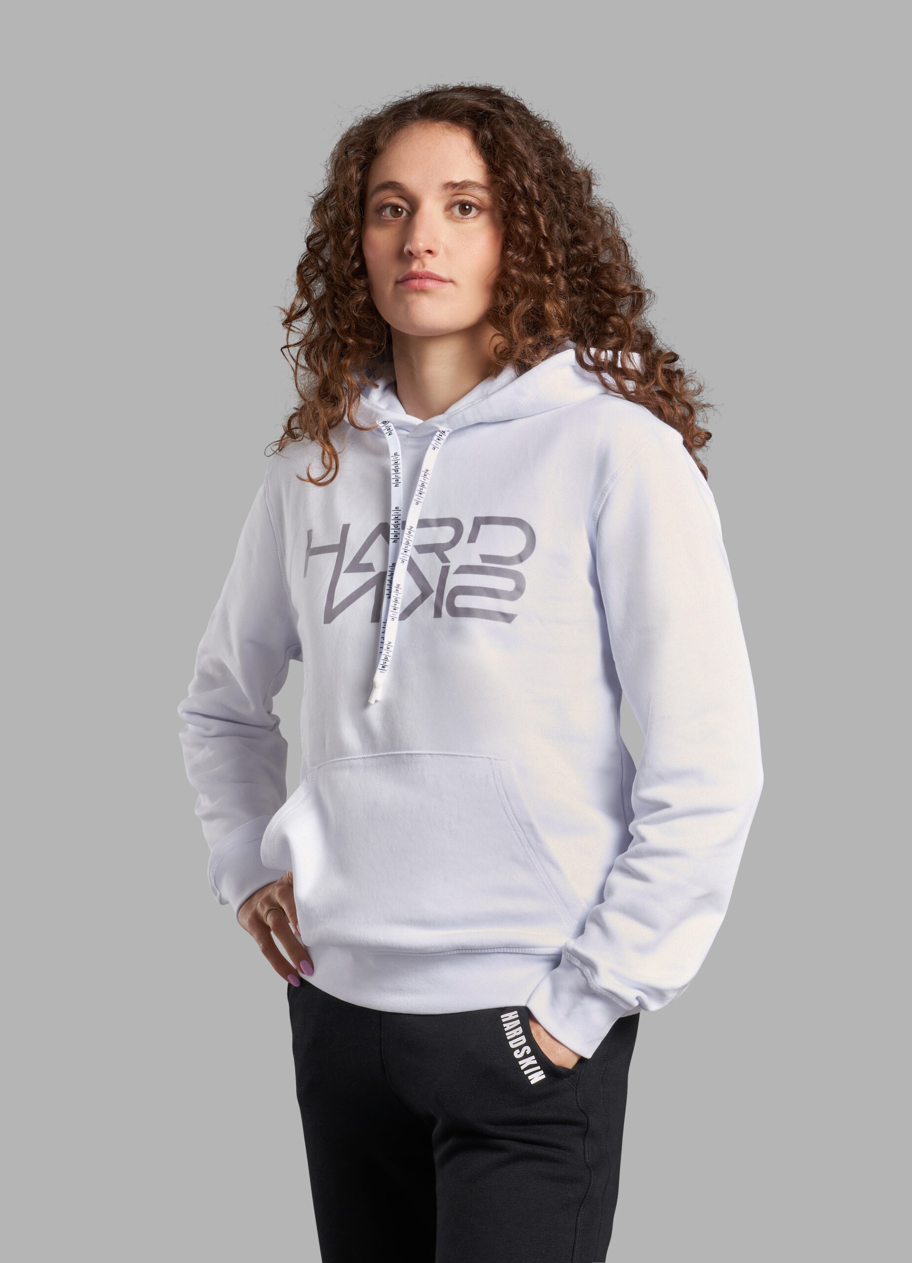 La nuova felpa di cotone 100% biologico brandizzata Hardskin, con la scritta Hardskin “al contrario” è perfetta per il tuo nuovo look.