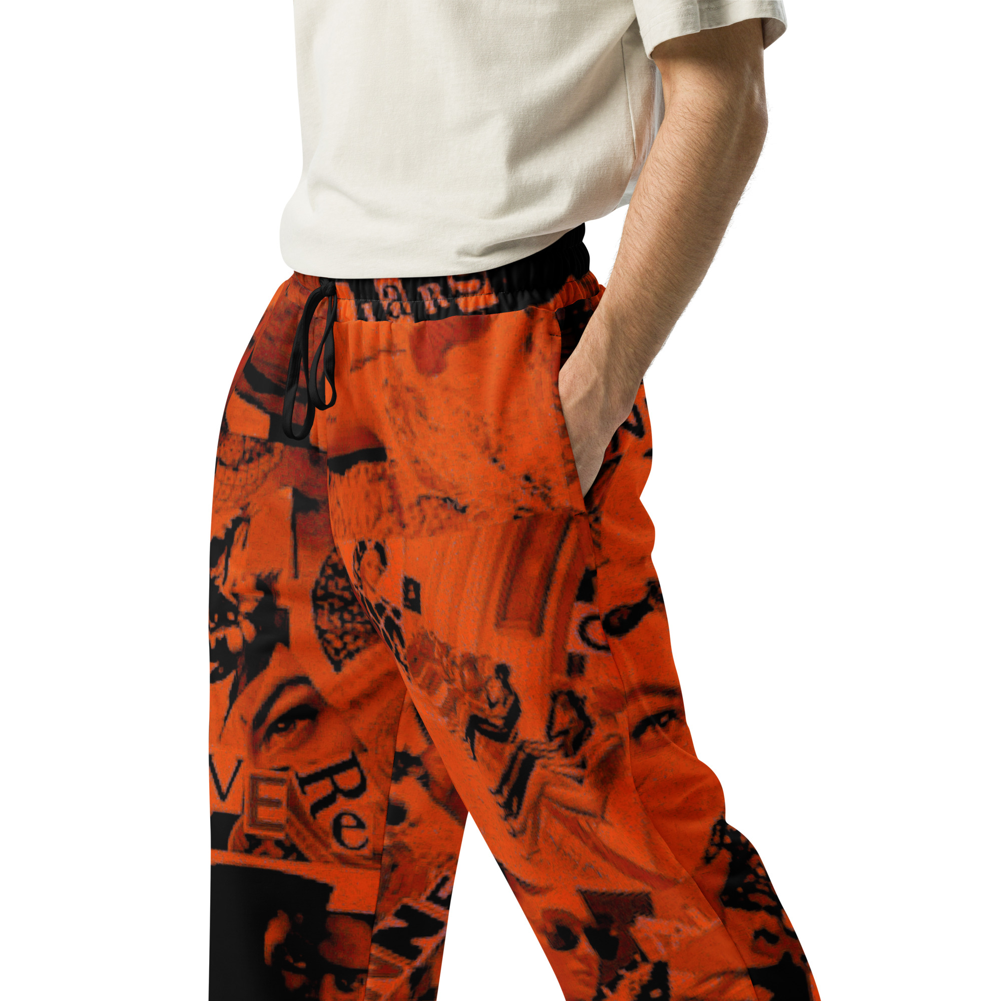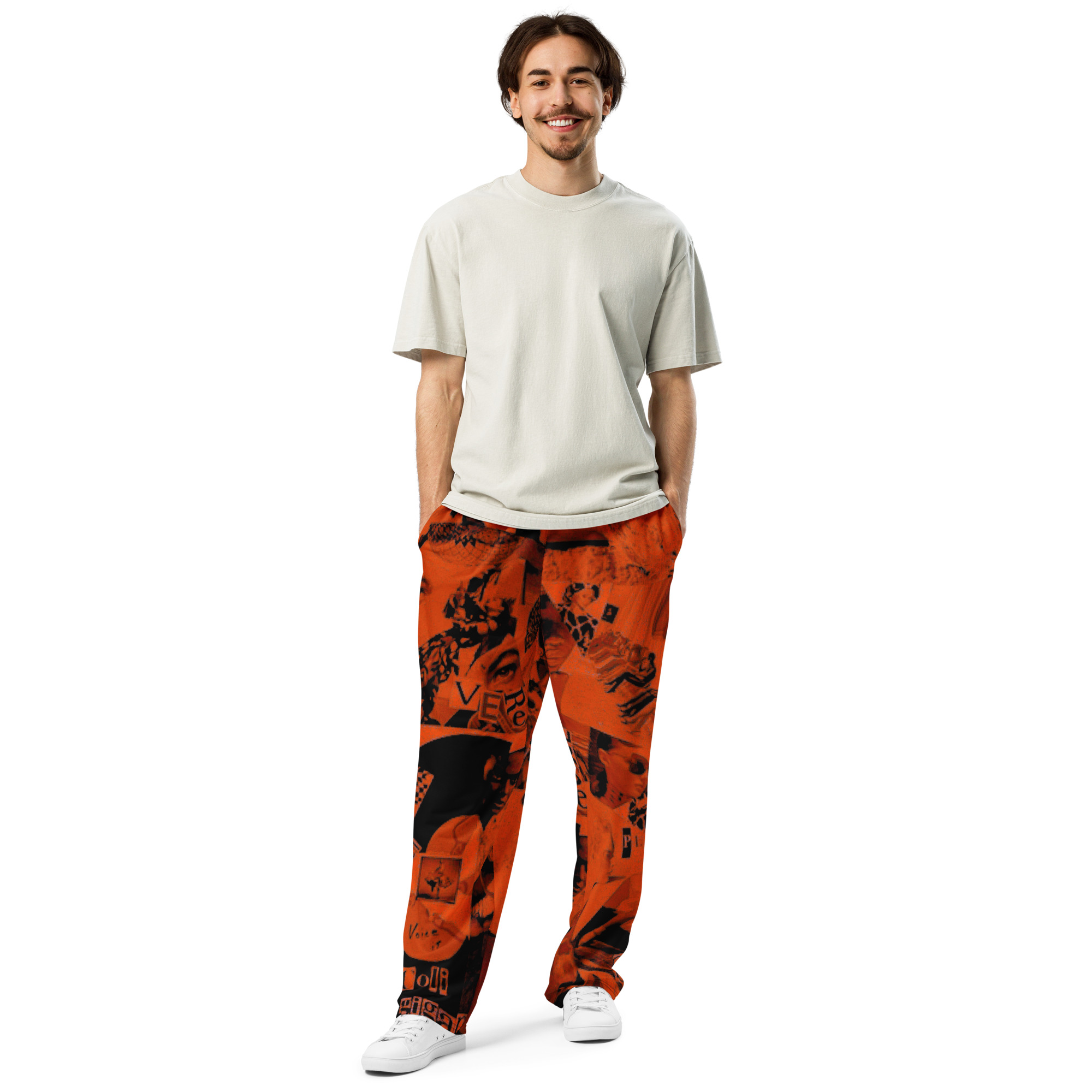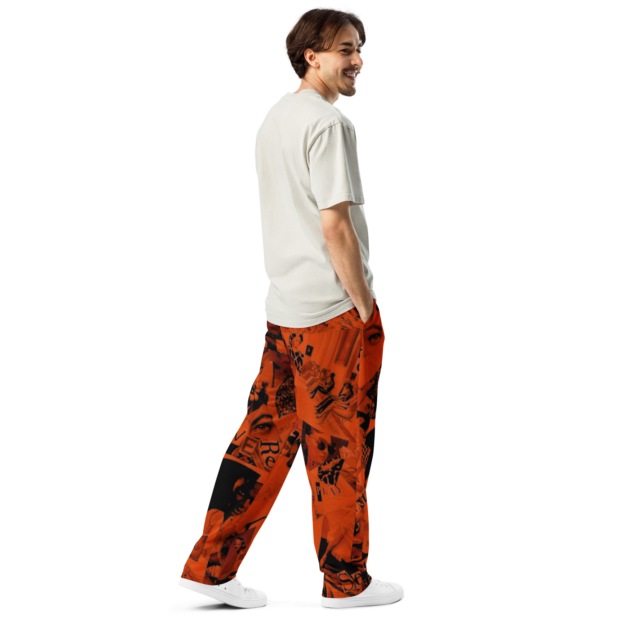 Riscopri la moda anni 90 con questi joggers a gamba ampia con stampa all-over. Ideali per look athleisure e casual, offrono una vestibilità unisex e comode tasche laterali.