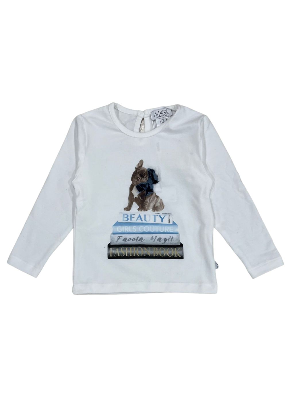 T-shirt in jersey di cotone, Girocollo, Maniche lunghe, Stampa frontale con dettaglio fiocchetto di velluto