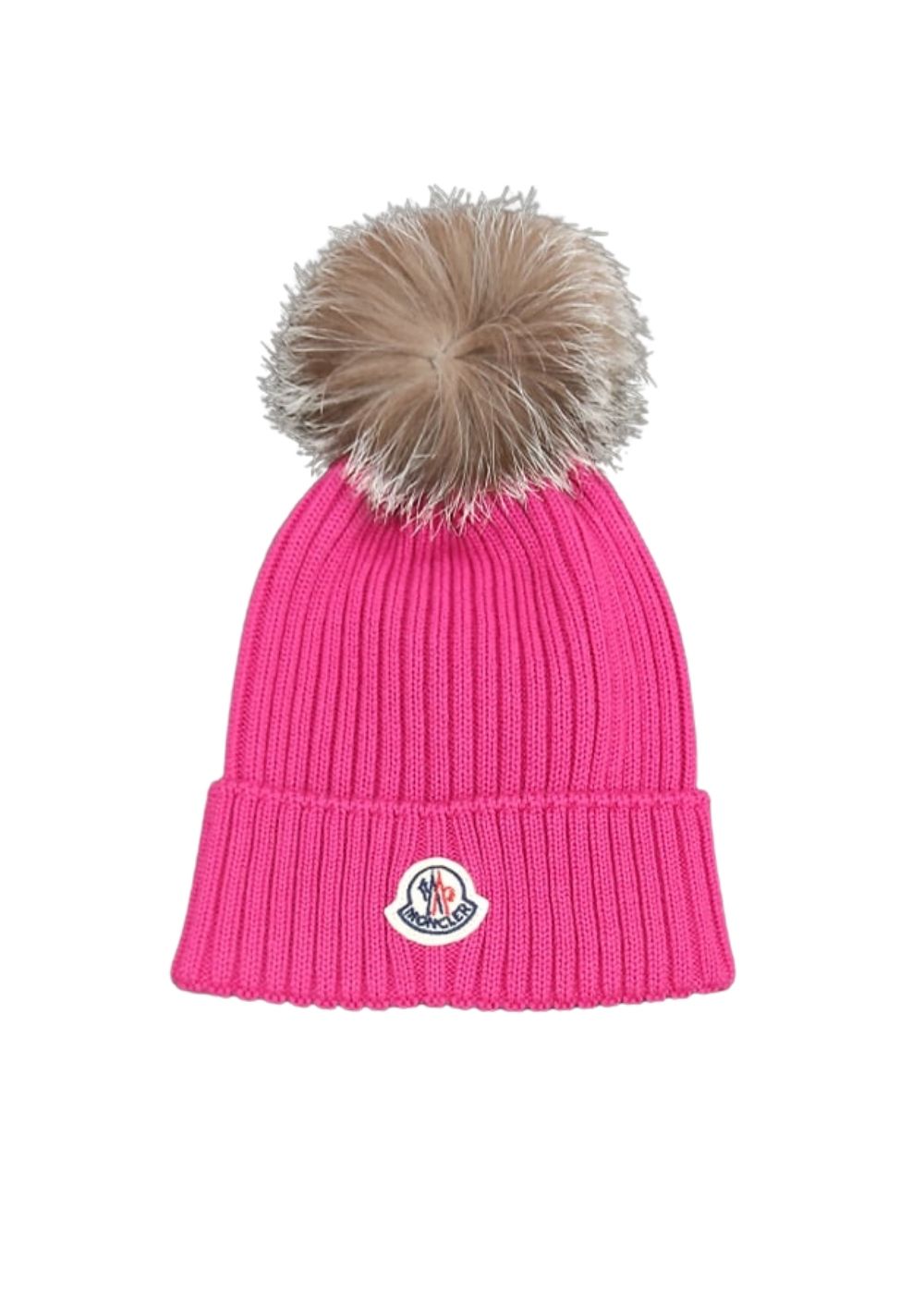 L’accessorio mini me che completa il guardaroba dell’inverno. Questo cappello è un accessorio iconico Moncler ed è realizzato in maglia di lana lavorata a costa inglese. Impreziosito con pon-pon in pelliccia di volpe e logo sul davanti.