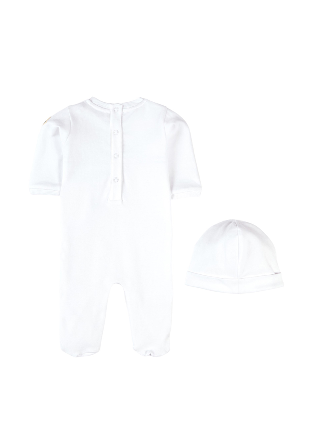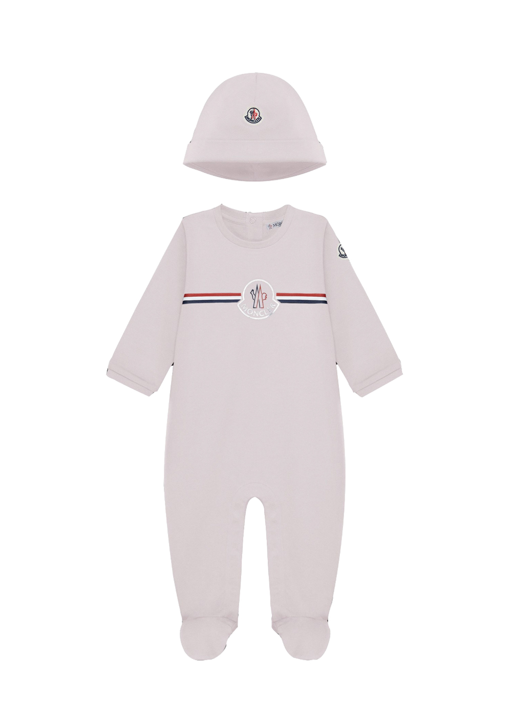 Perfetto da regalare e regalarsi, questo set da bambino è composto da cappello e tutina coordinati. Il tessuto in jersey stretch è leggero e morbido sulla pelle mentre la stampa tricolore e il logo Moncler a rilievo sono dettagli grafici che firmano in chiave distintiva il look dei più piccoli.
