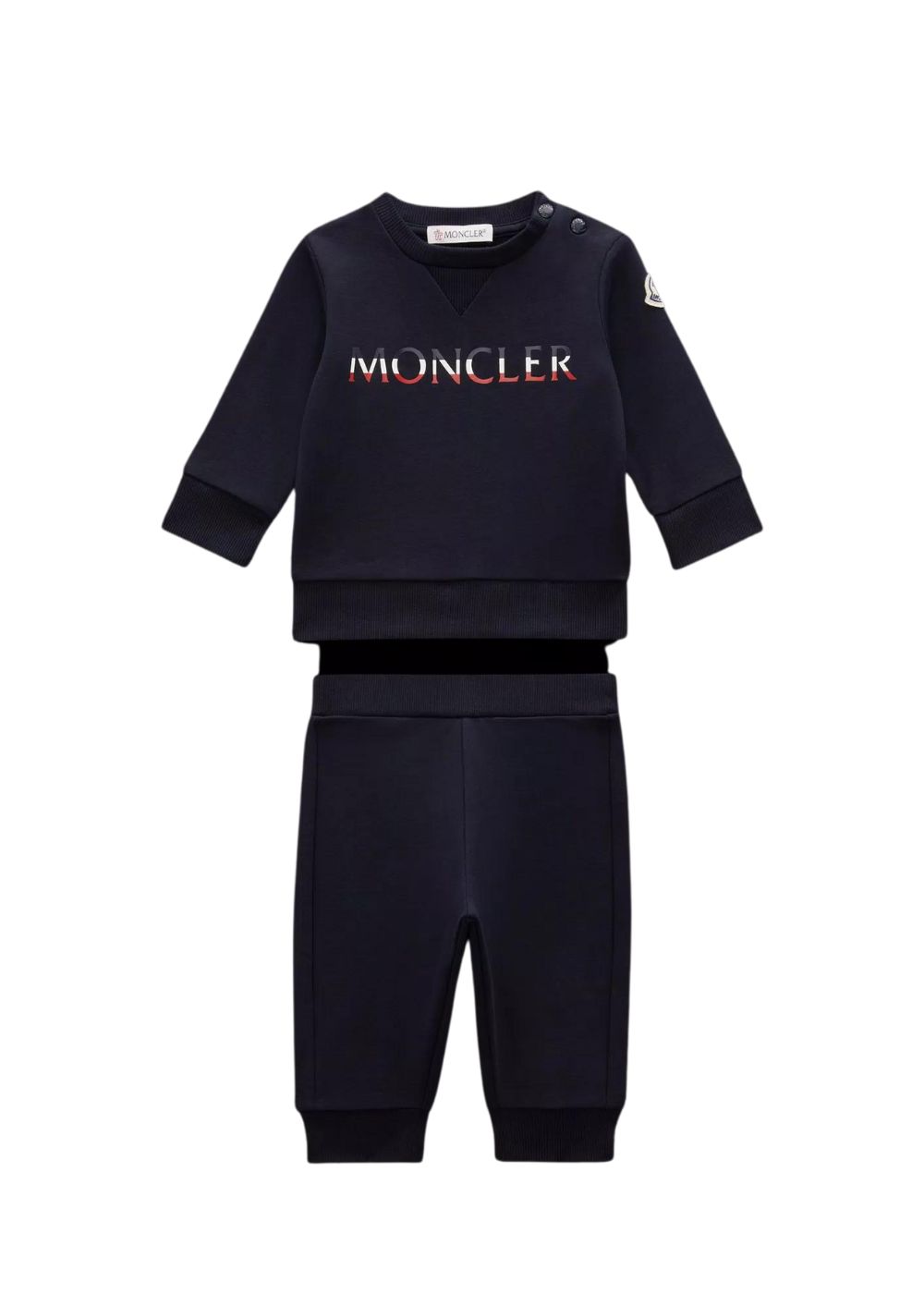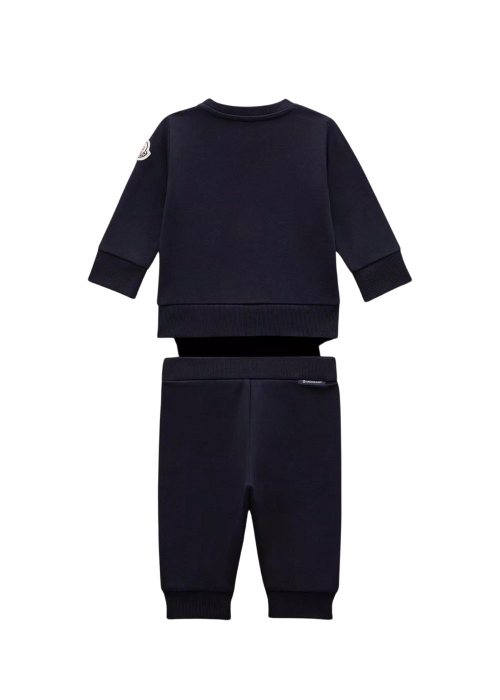 Raffinato modello da neonato, questo completo è composto da sweatshirt e pantaloni sportivi coordinati.